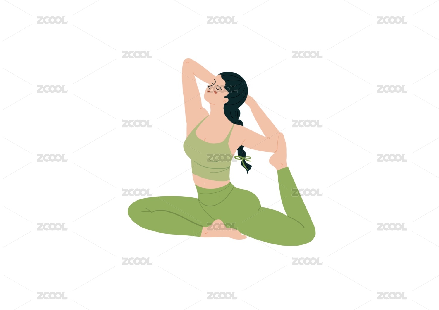 一个正在做瑜伽运动减肥减脂的丸子头女孩,简约插画素材
