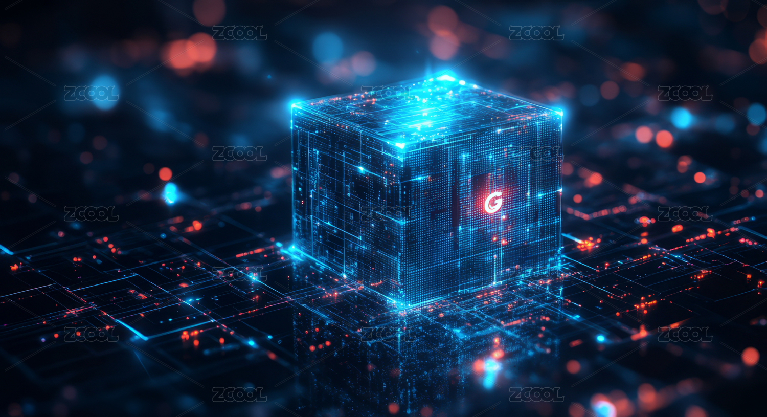 AI科技磨砂玻璃全息图魔方立方体大模型