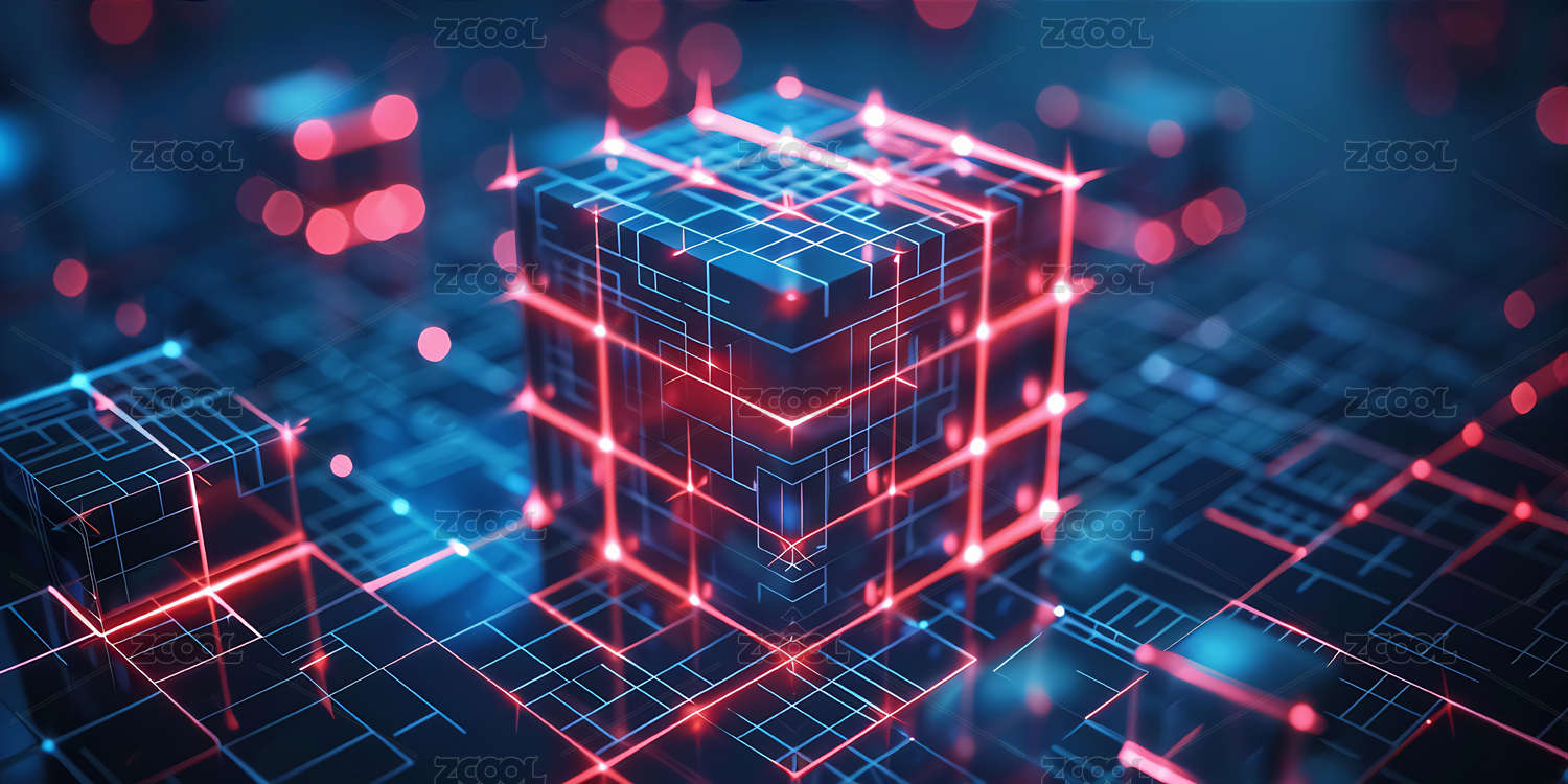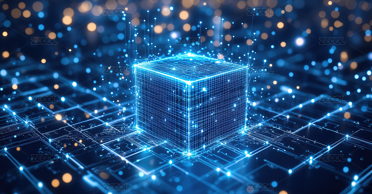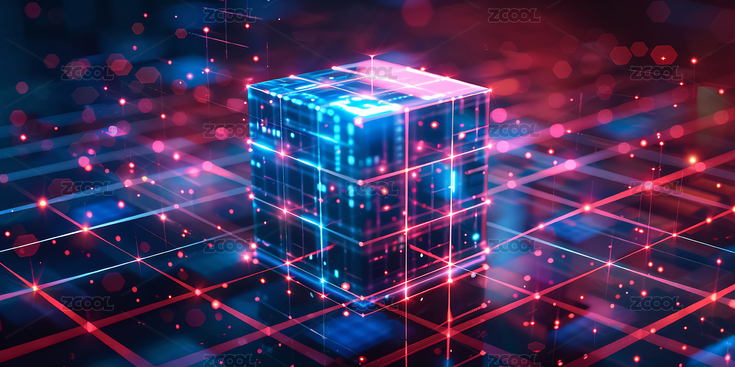 科技,插图,魔方,立方体,炫彩,光束,体积光,3D,数字,影像