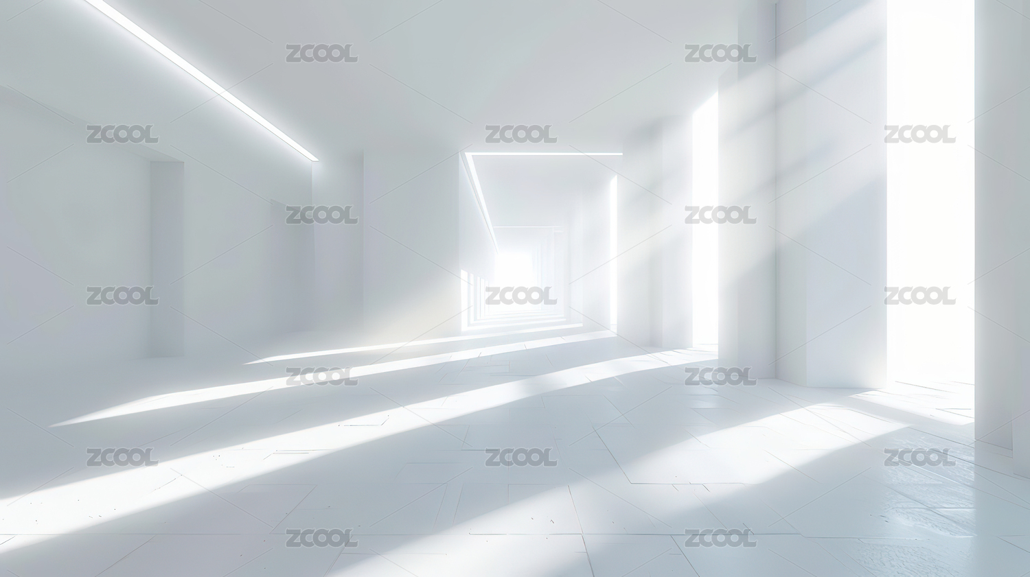 白色极简走廊空间光影交错