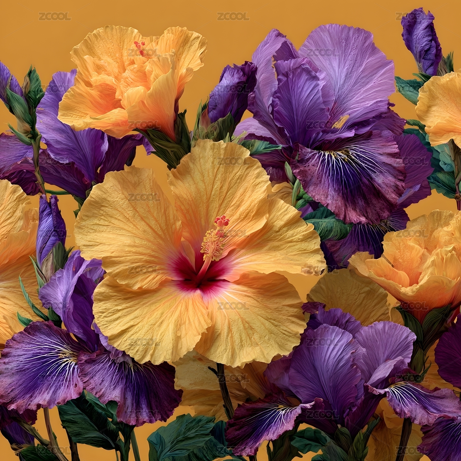 紫色鸢尾与黄色扶桑