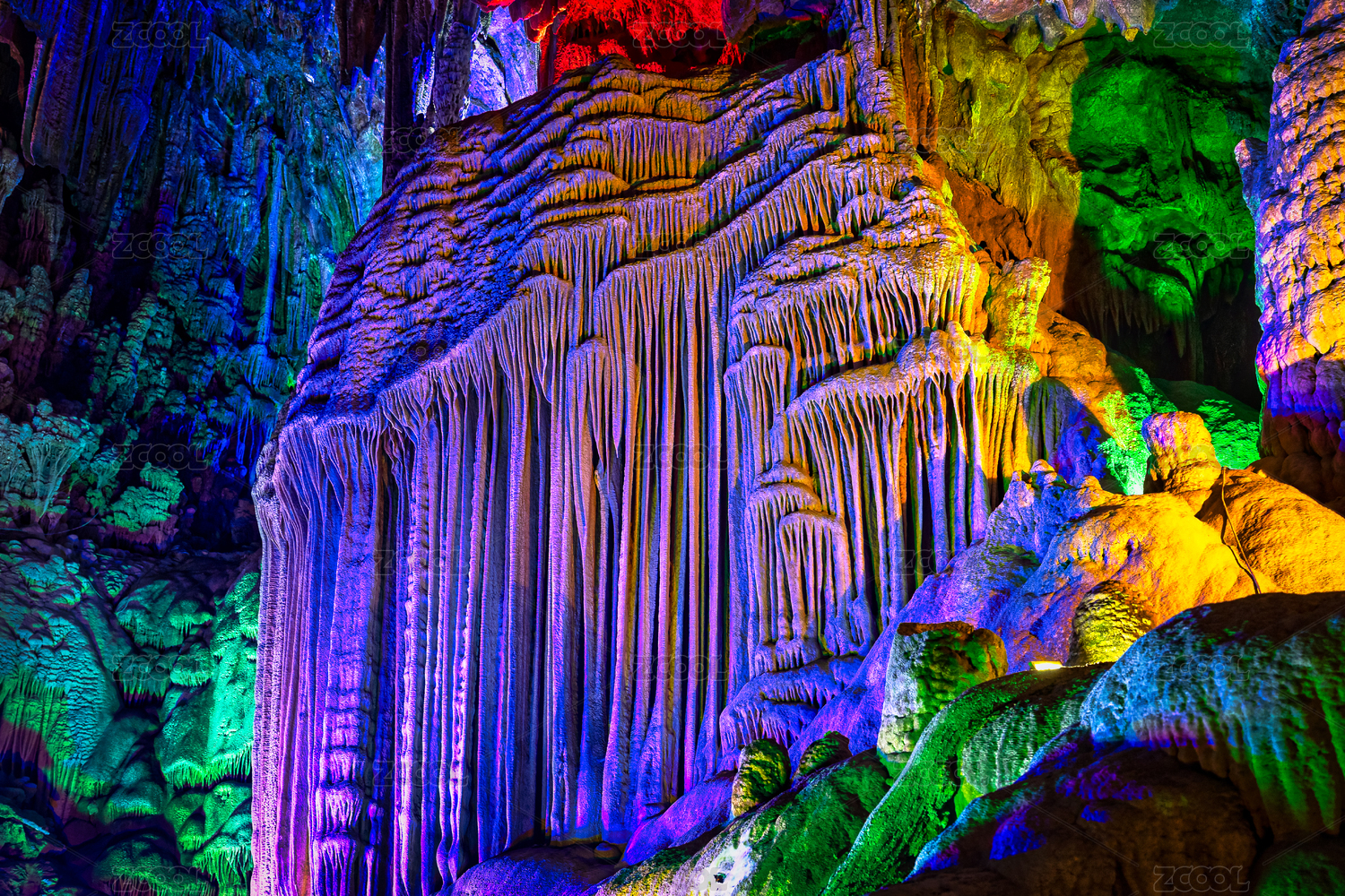 桂林芦笛岩景区的钟乳石