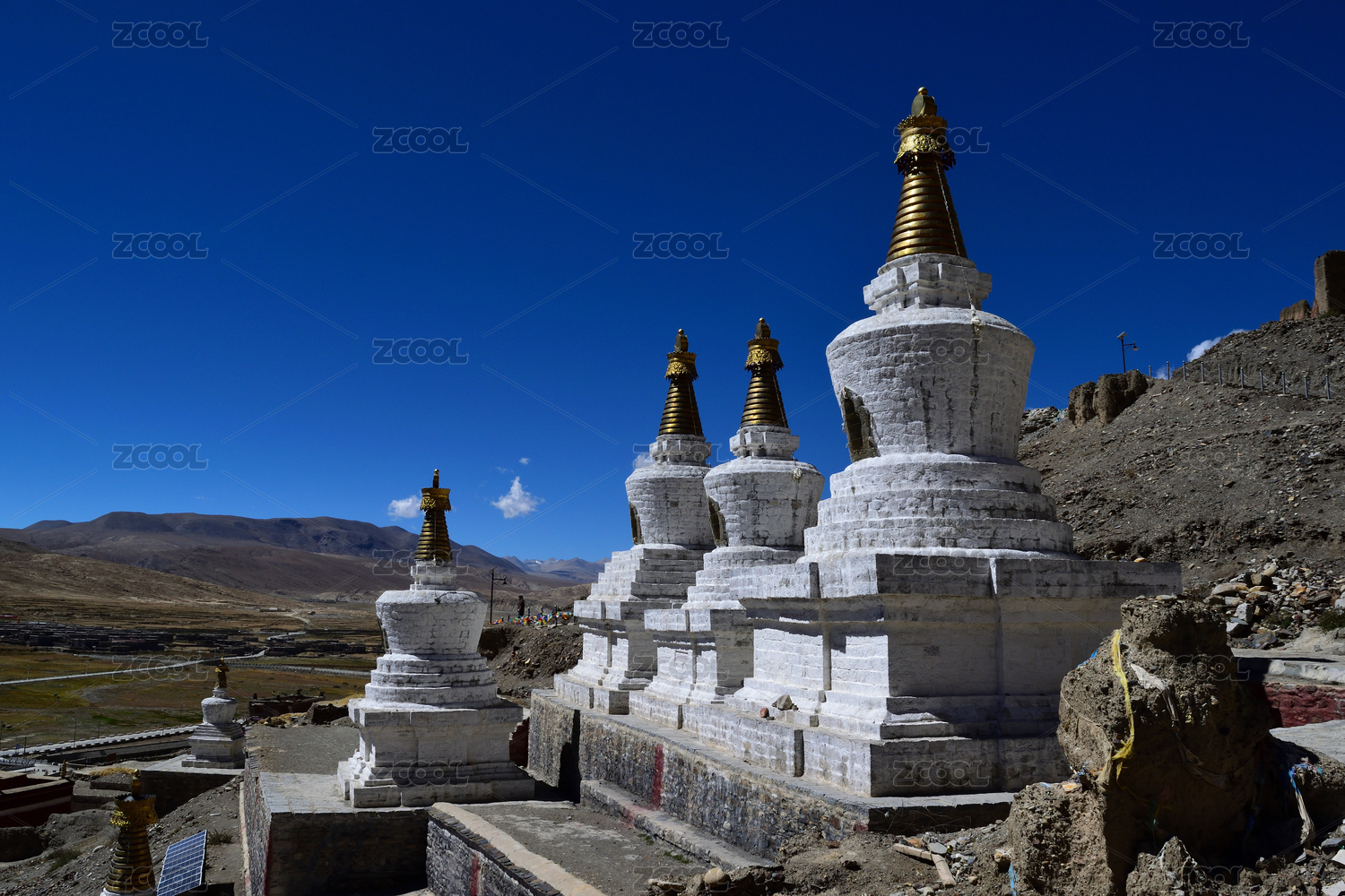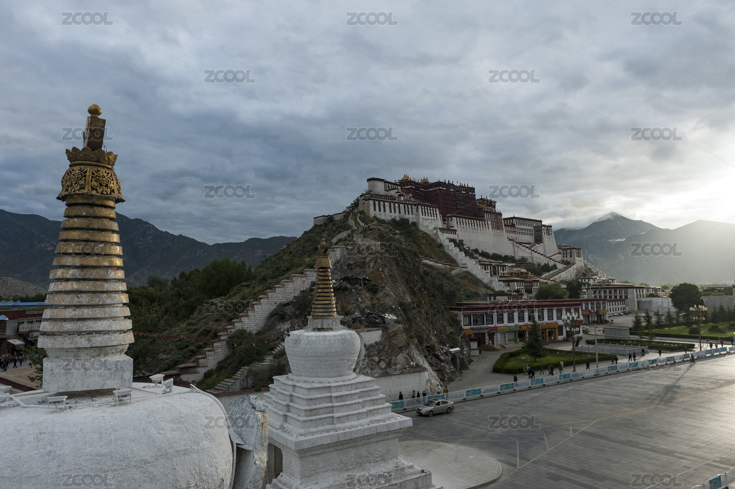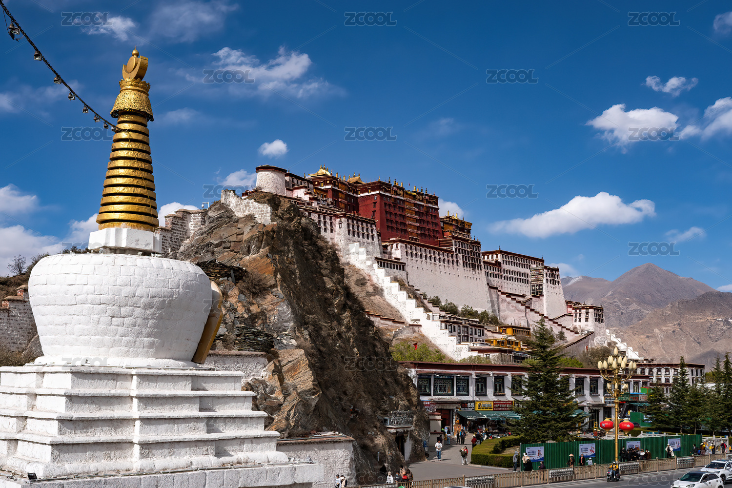 中国西藏拉萨市布达拉宫和佛塔夏季风光
