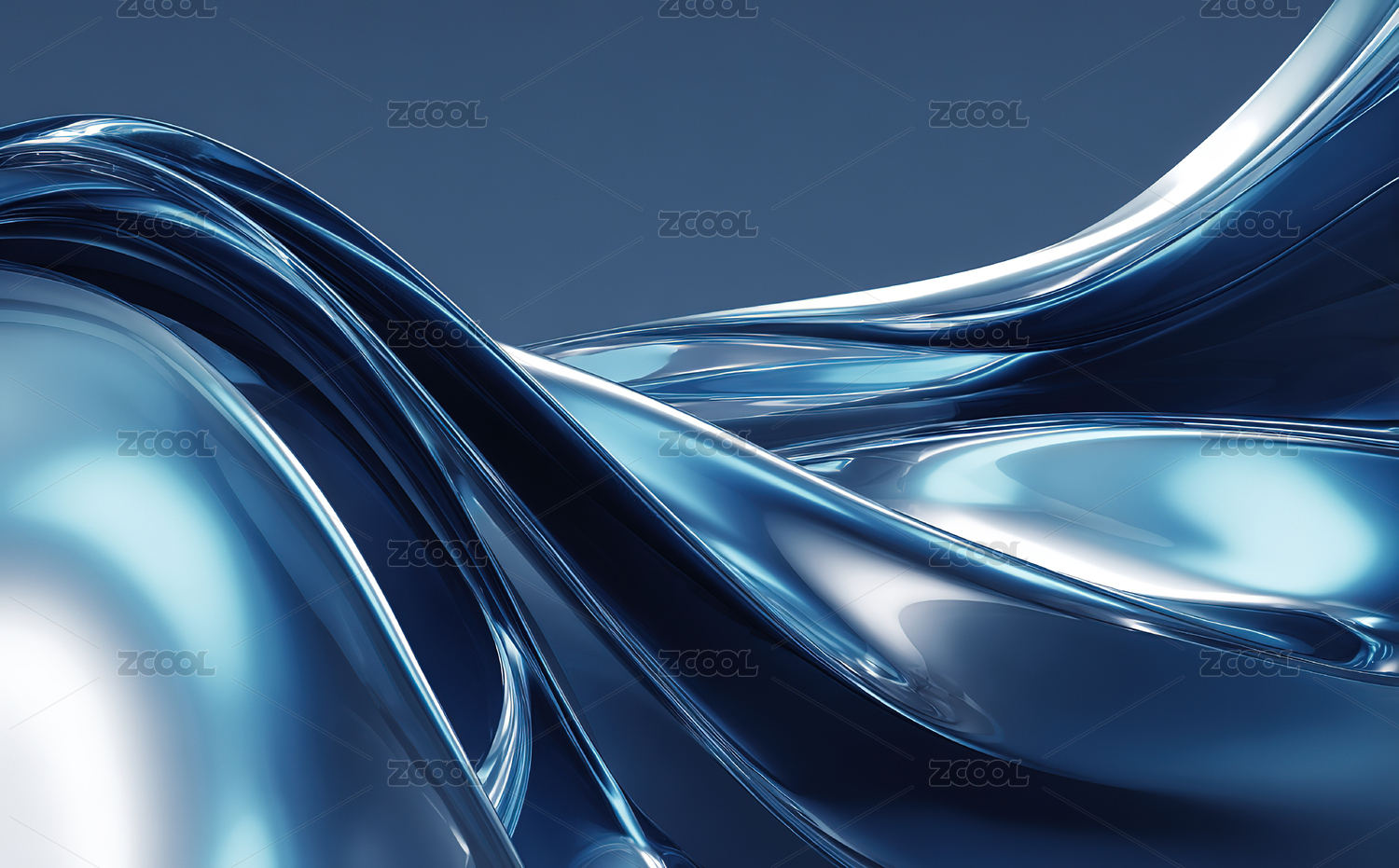 蓝色金属材质流线型抽象艺术