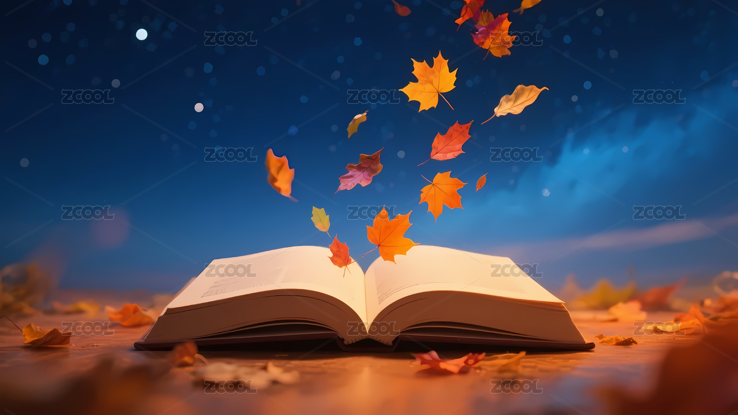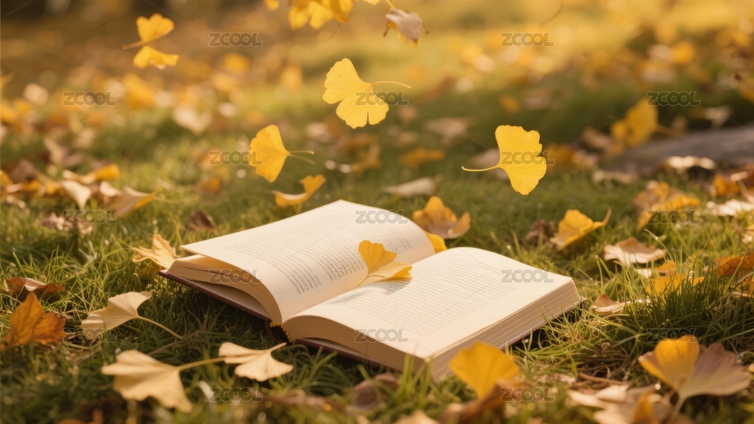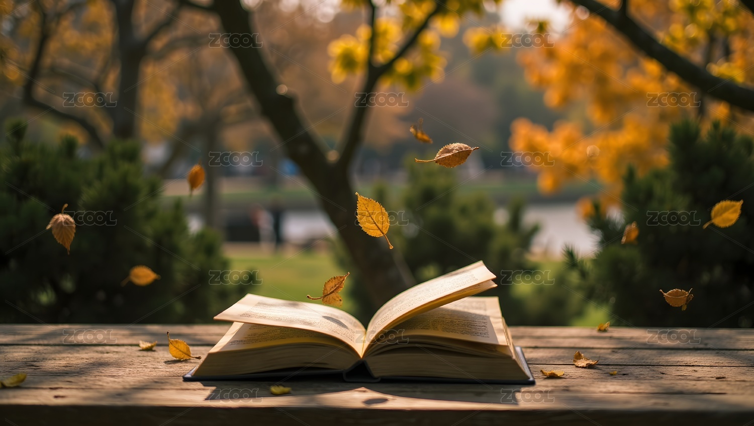 书籍,打开的书,落叶,地面,冬季,森林,雪花,飞舞,宁静,人影