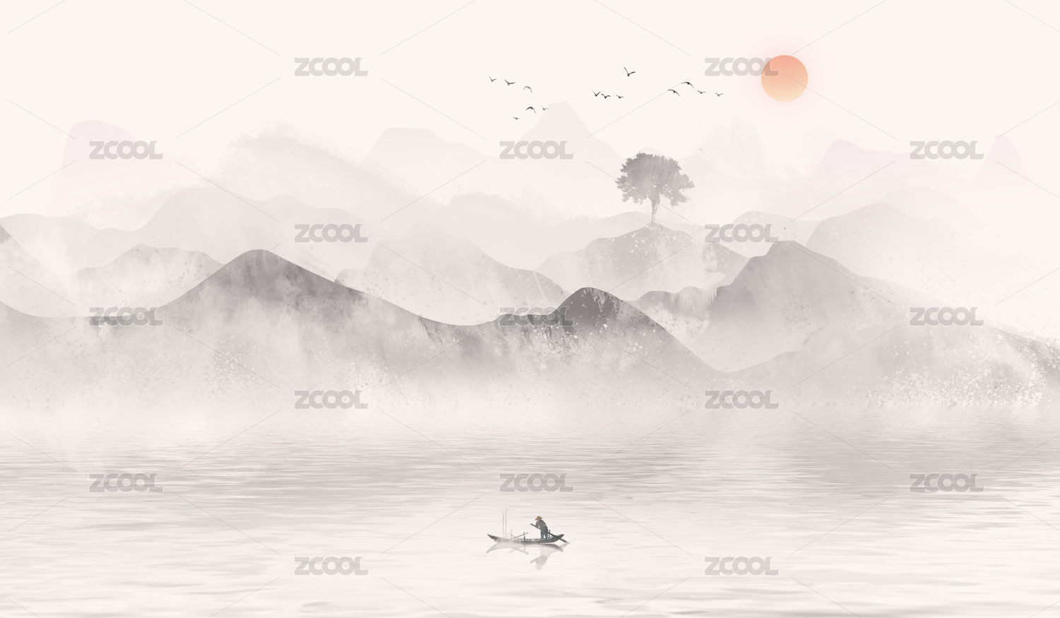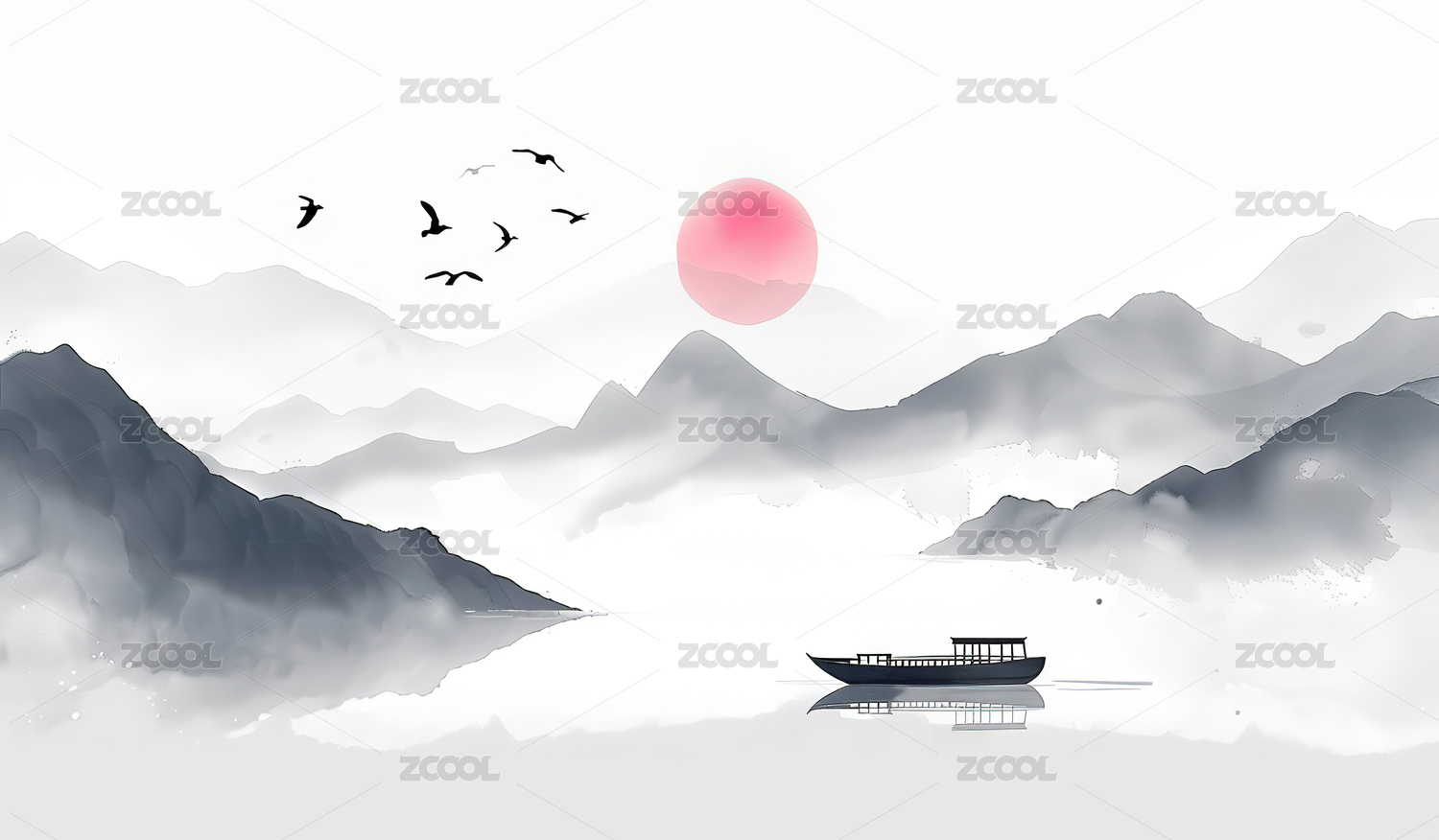 手绘国潮风千里江山图 水墨泼墨泼彩山水画