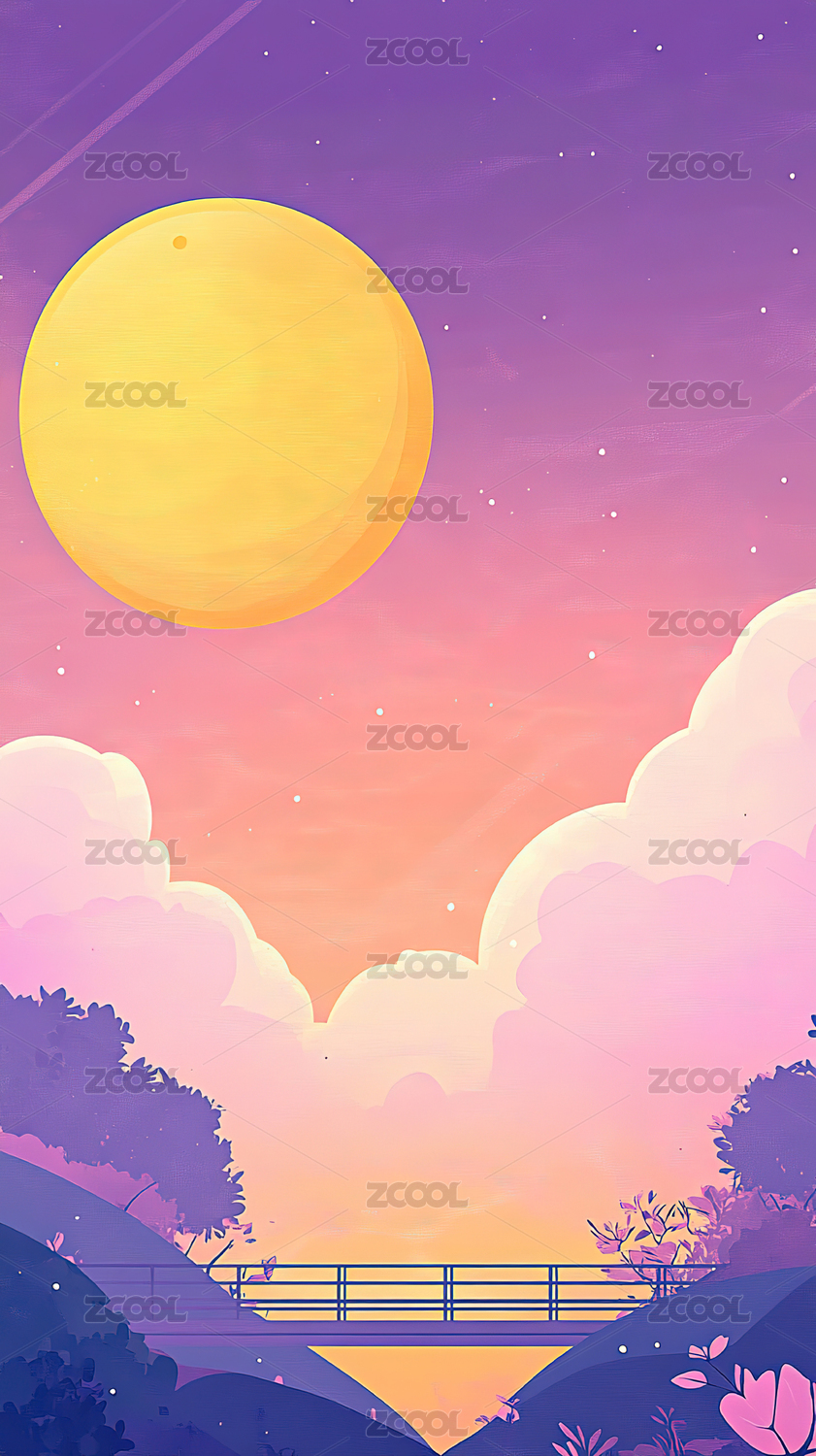 AIGC202403,月亮,传统,文化,中秋节,云,圆月,满月,节日,插图
