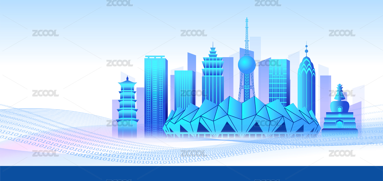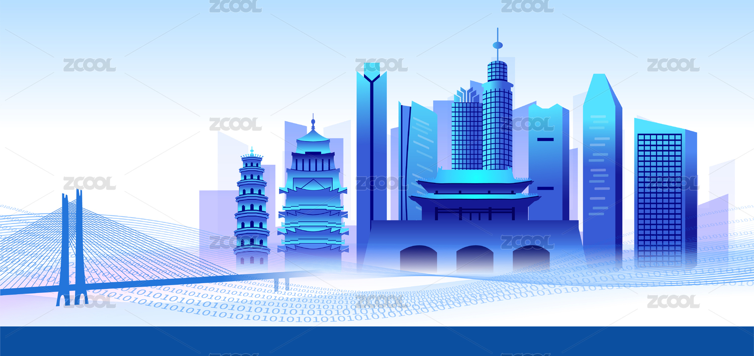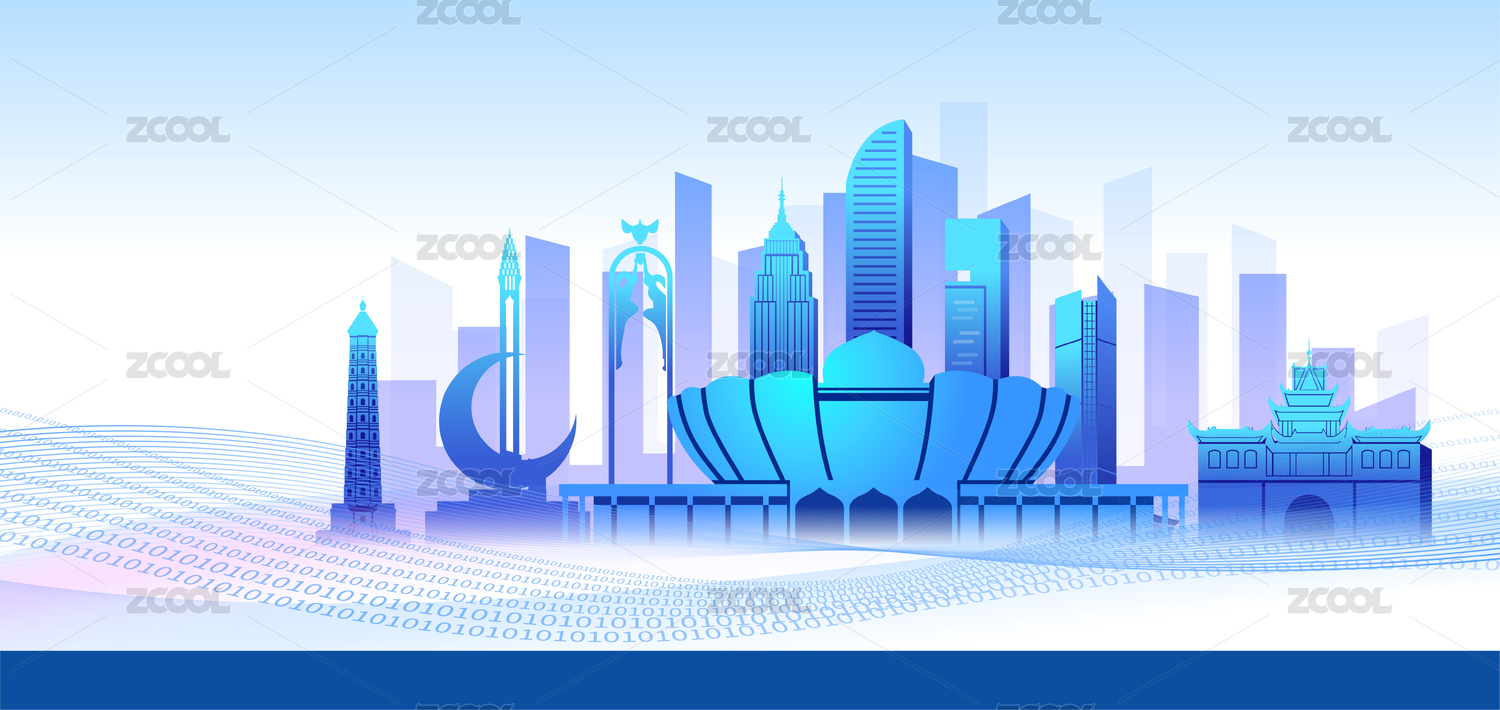 中国青海省西宁市商务科技城市彩色插画