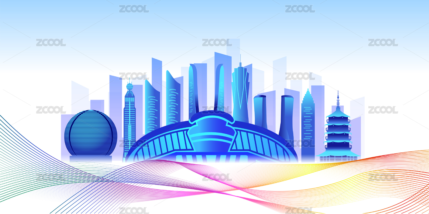 中国广东省佛山市商务科技城市彩色插画