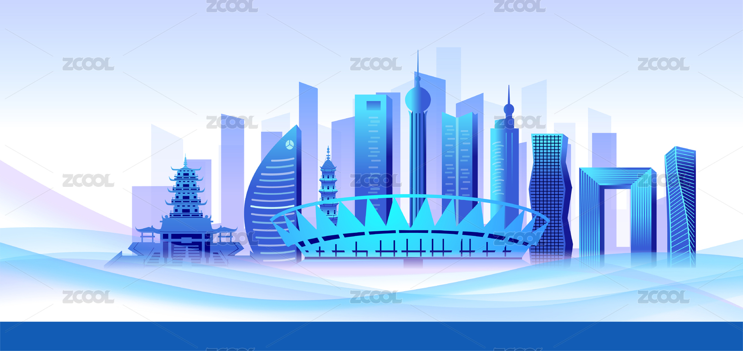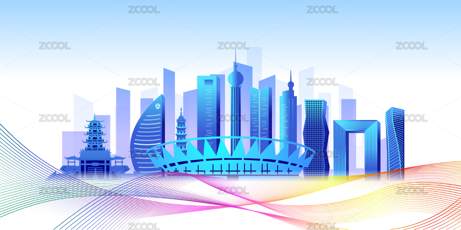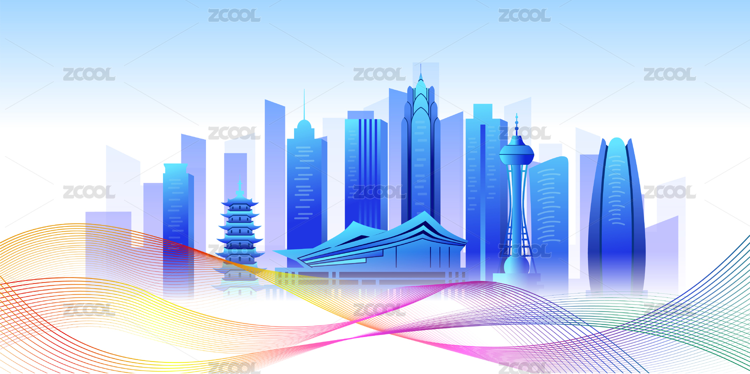 中国浙江杭州市商务科技城市彩色插画