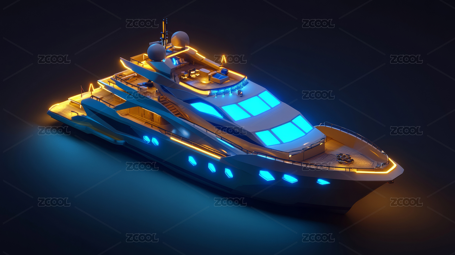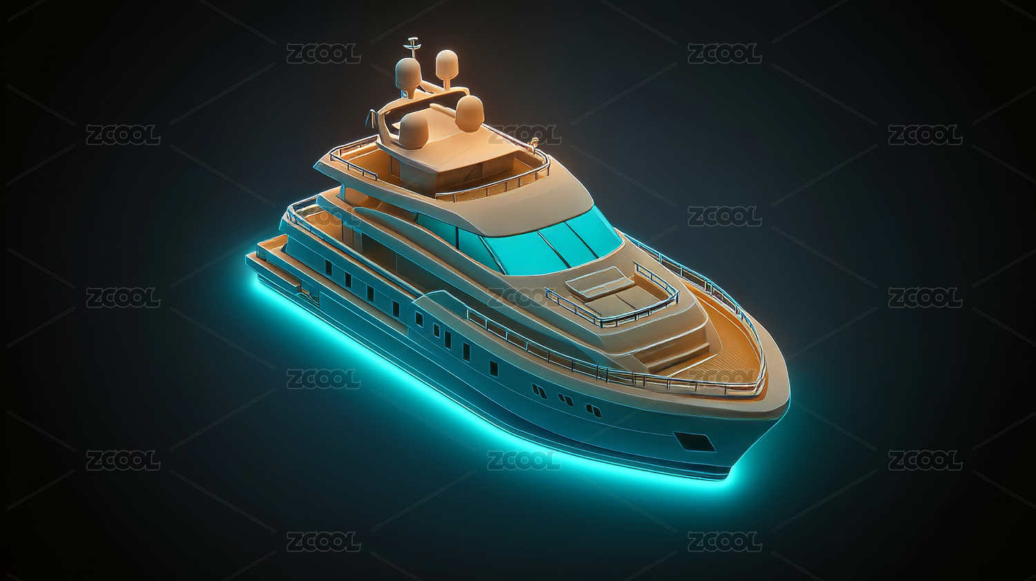 3D,立体,三维,插图,船,海,海洋,水,豪华,旅行