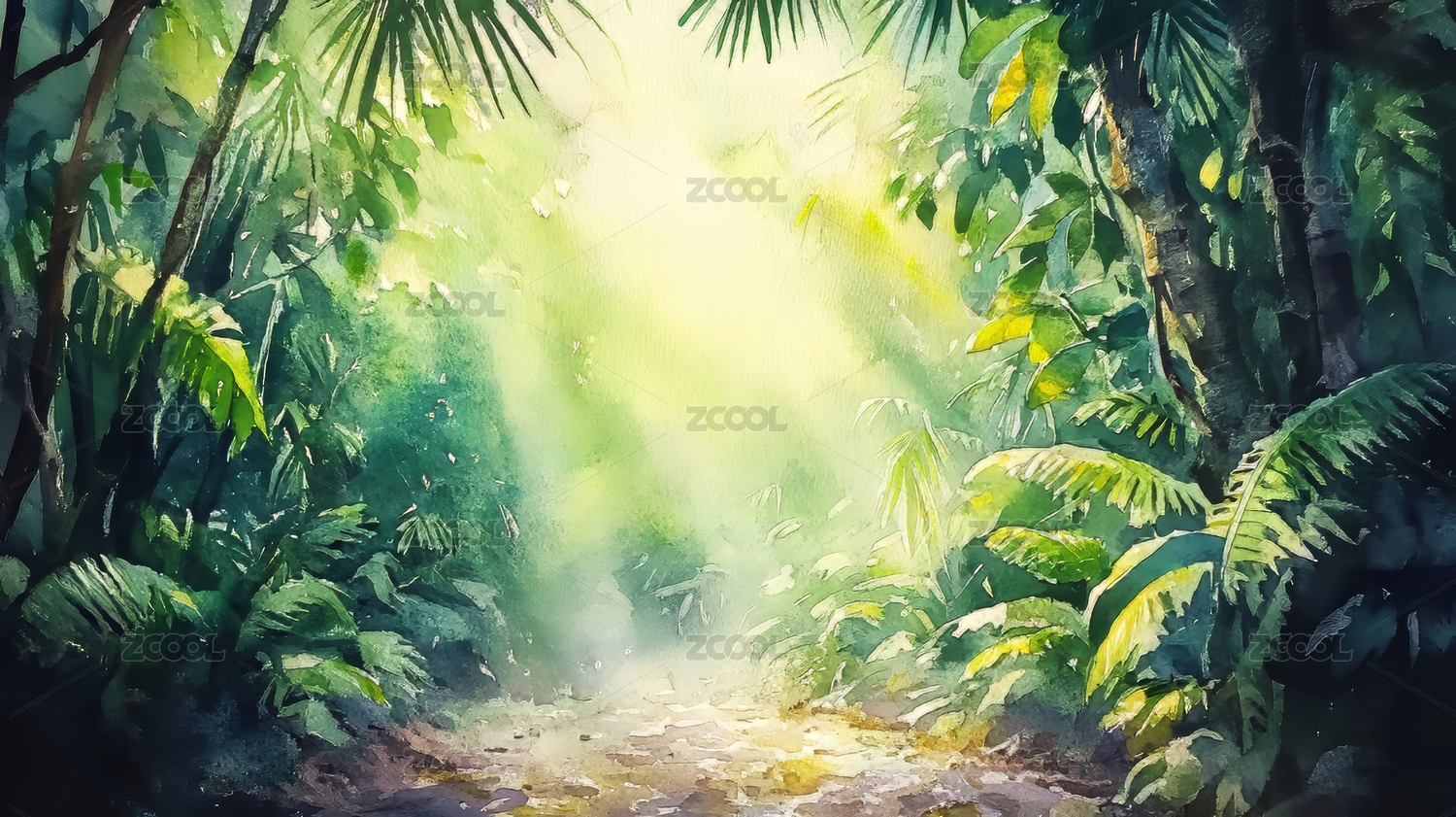 阳光穿透的绿色丛林