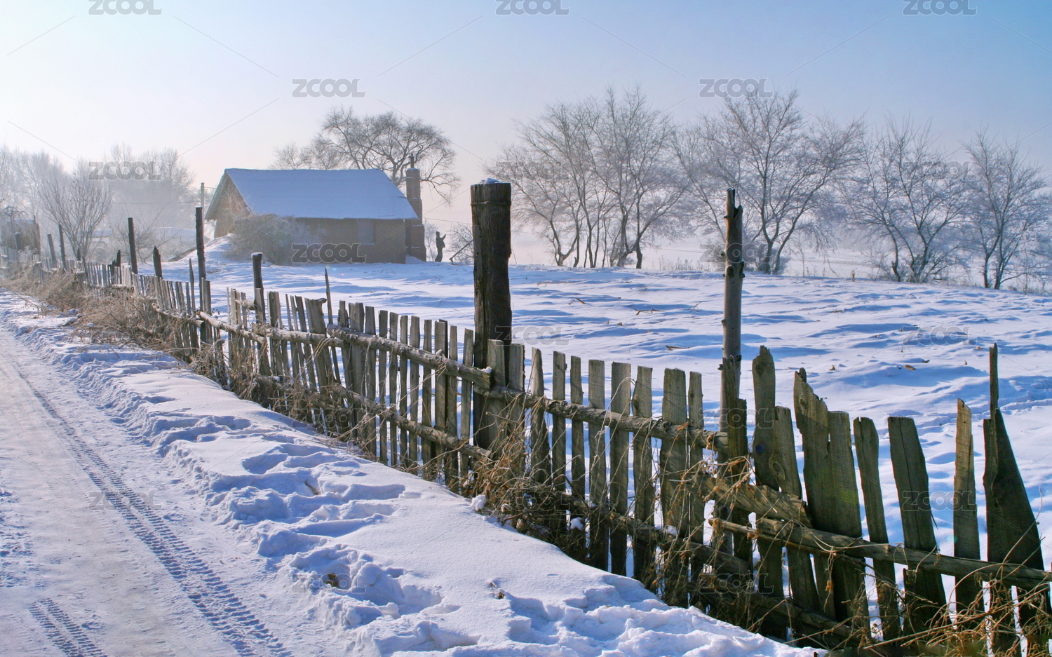 吉林省吉林市雾凇岛的白雪覆盖的田园风光