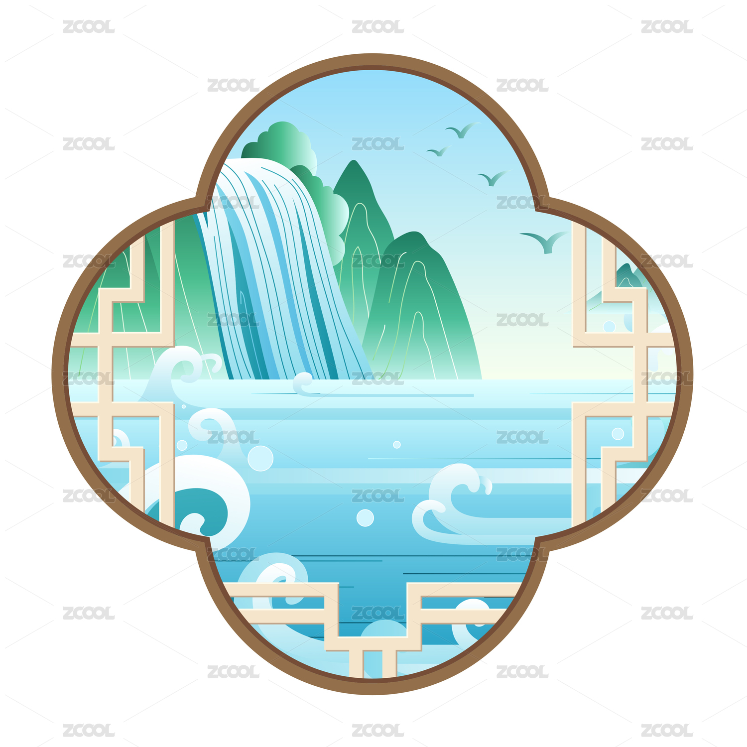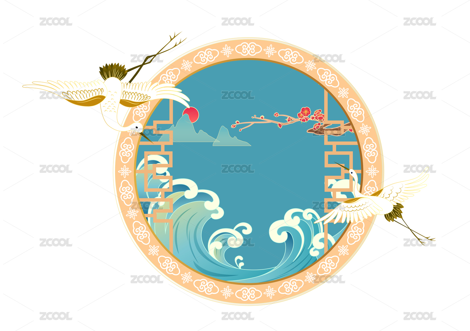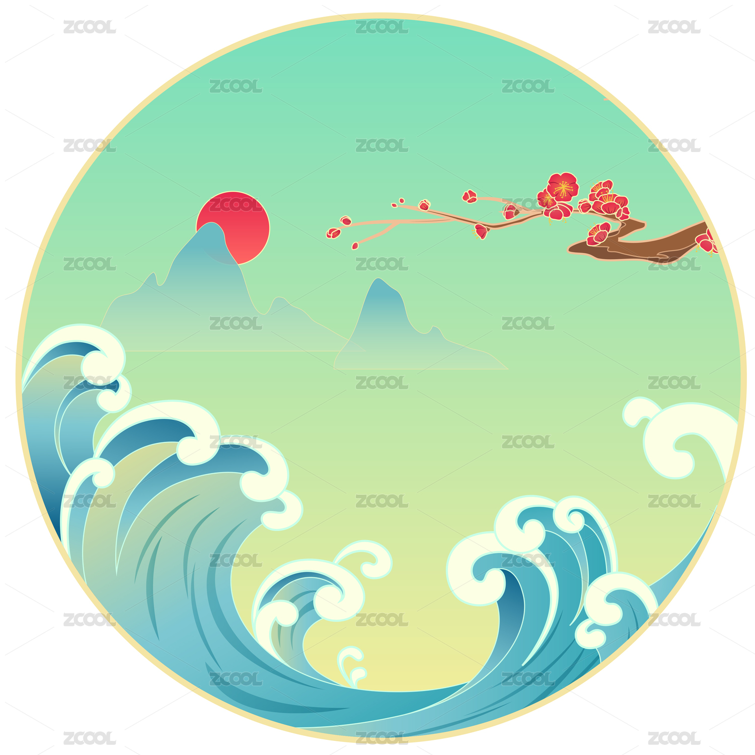 中国风,国风,传统,山水,梅花,中国,古典,水纹,海水纹,图案