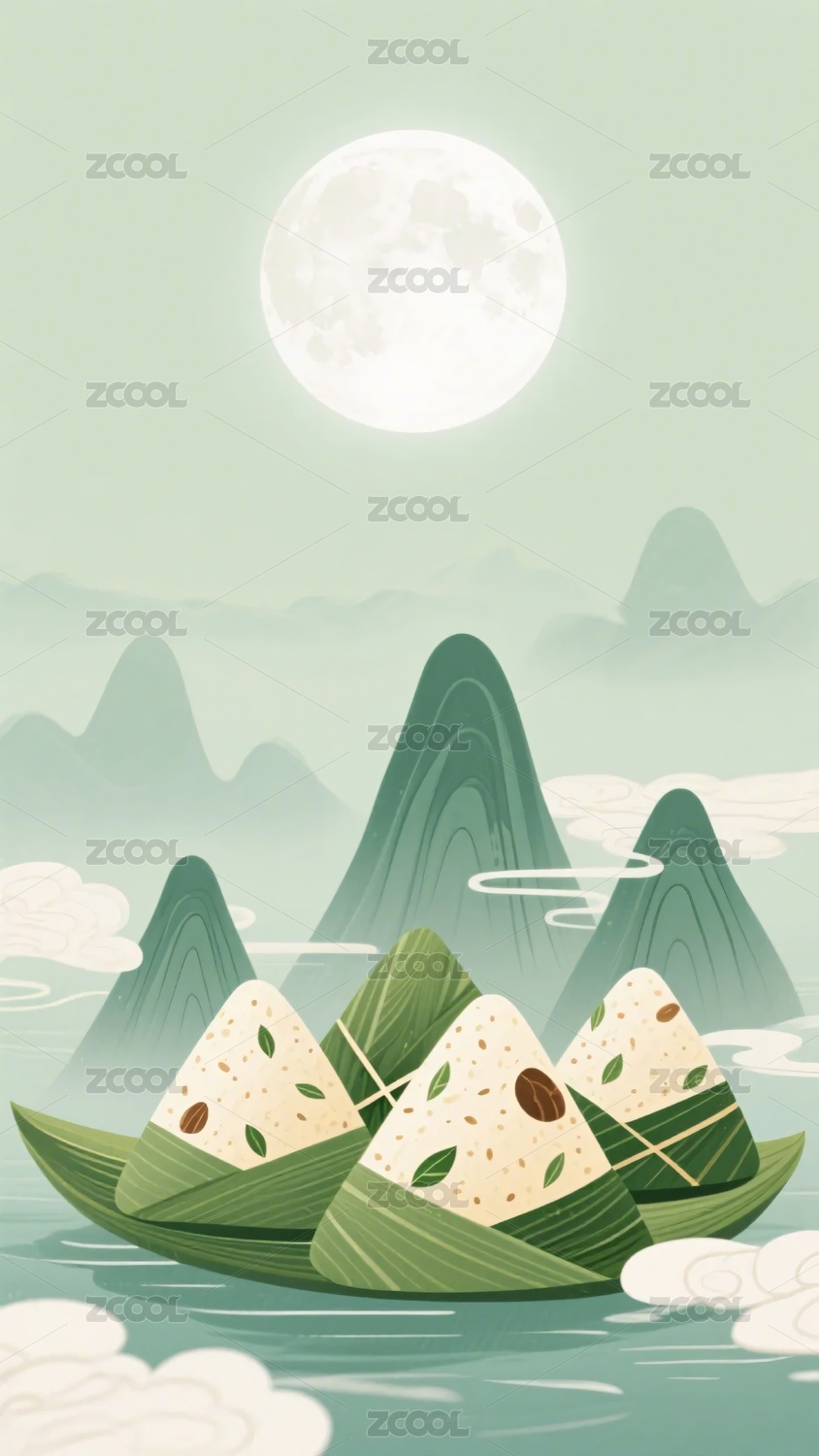五月初五端午节快乐卡通粽子龙舟国潮插画