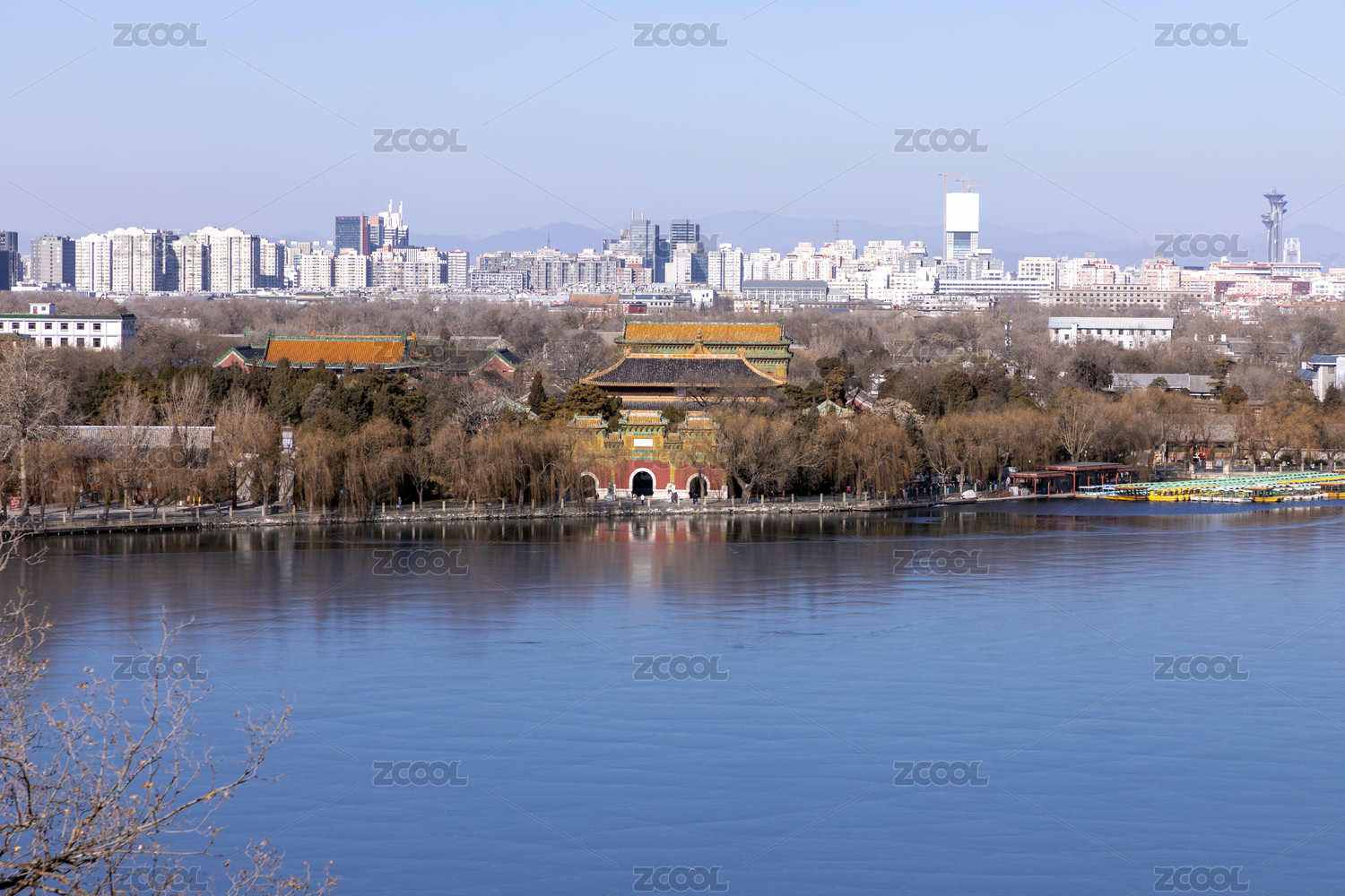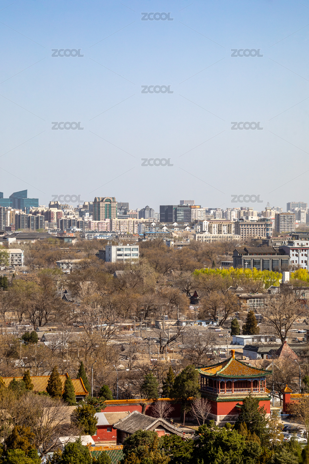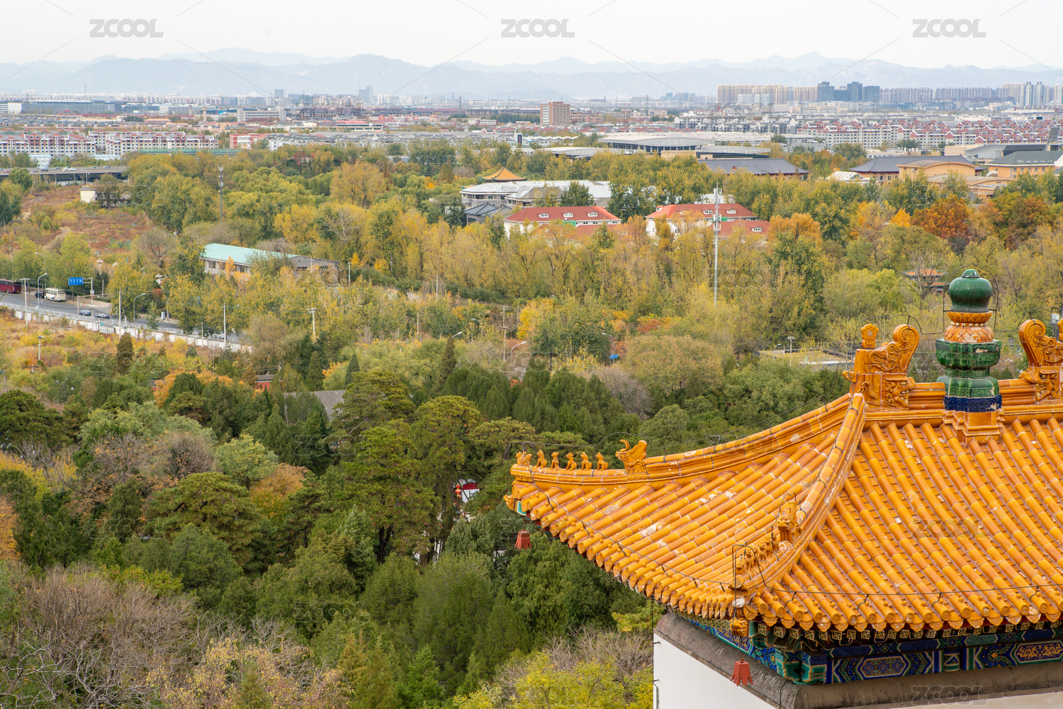 北京景山公园看寿皇殿建筑钟楼鼓楼中轴线
