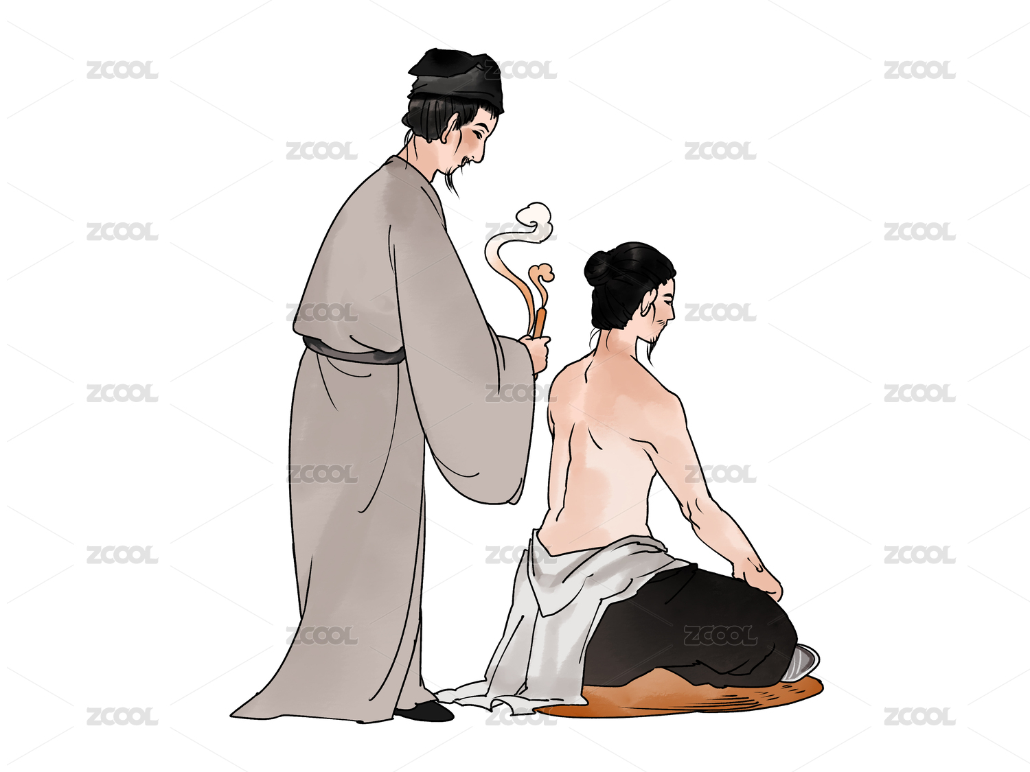 养生,泡脚,洗脚,古风,古代,卡通,健康,保健,理疗,木盆
