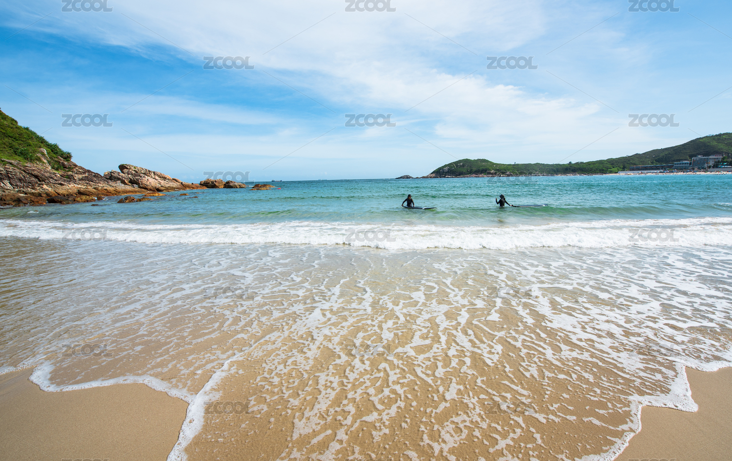 中国深圳东涌海岸夏日海浪与蓝天白云