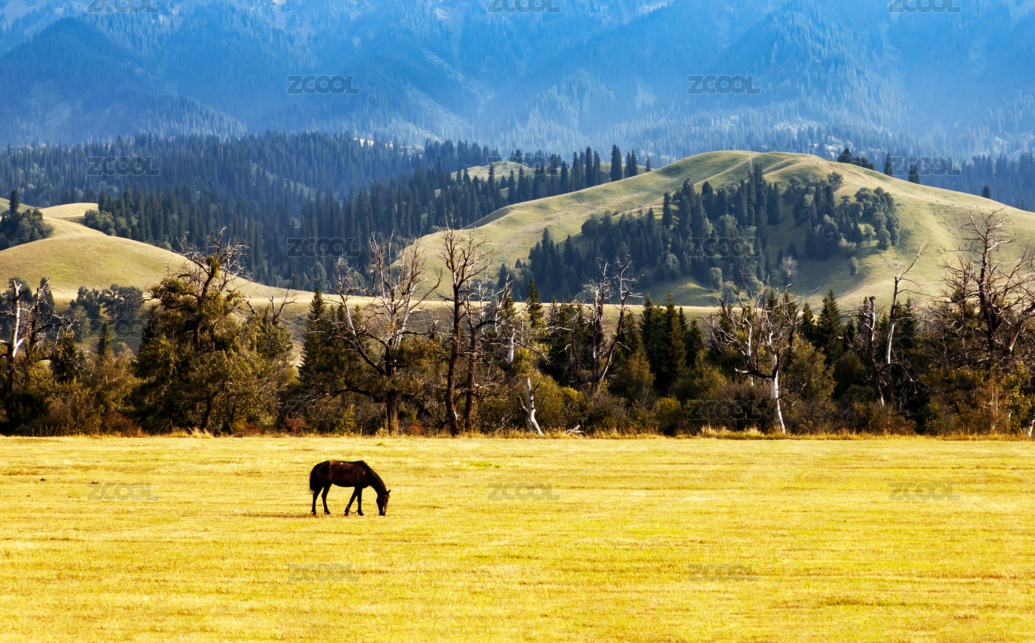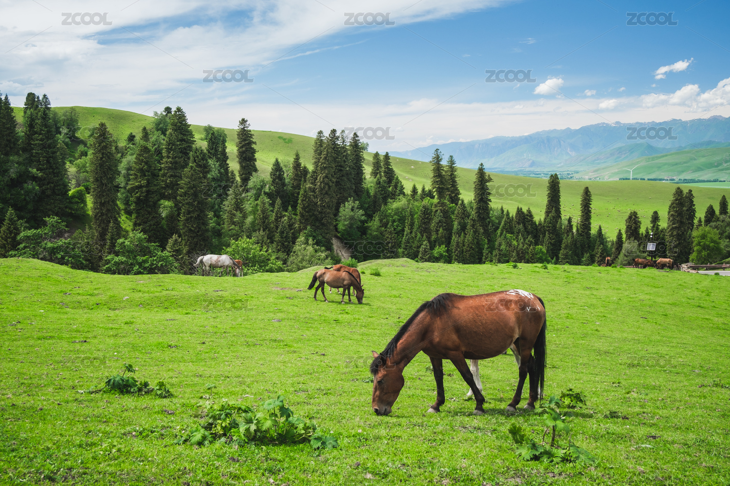 中国新疆伊犁库尔德宁草原高山草甸马吃草