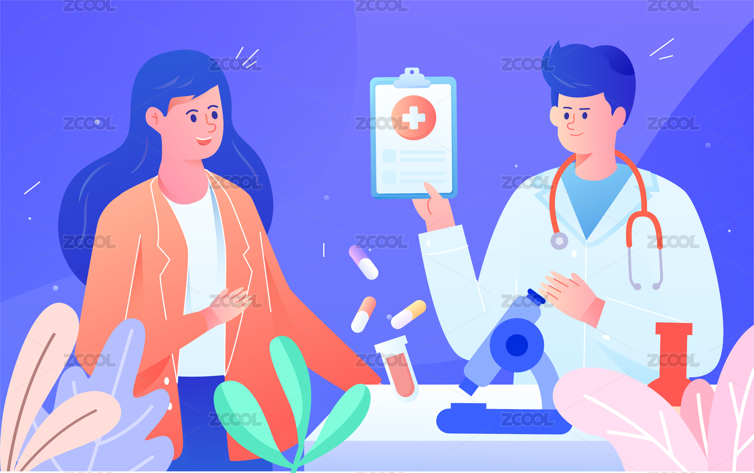 医生治疗新型疾病流感医疗健康背景矢量插画