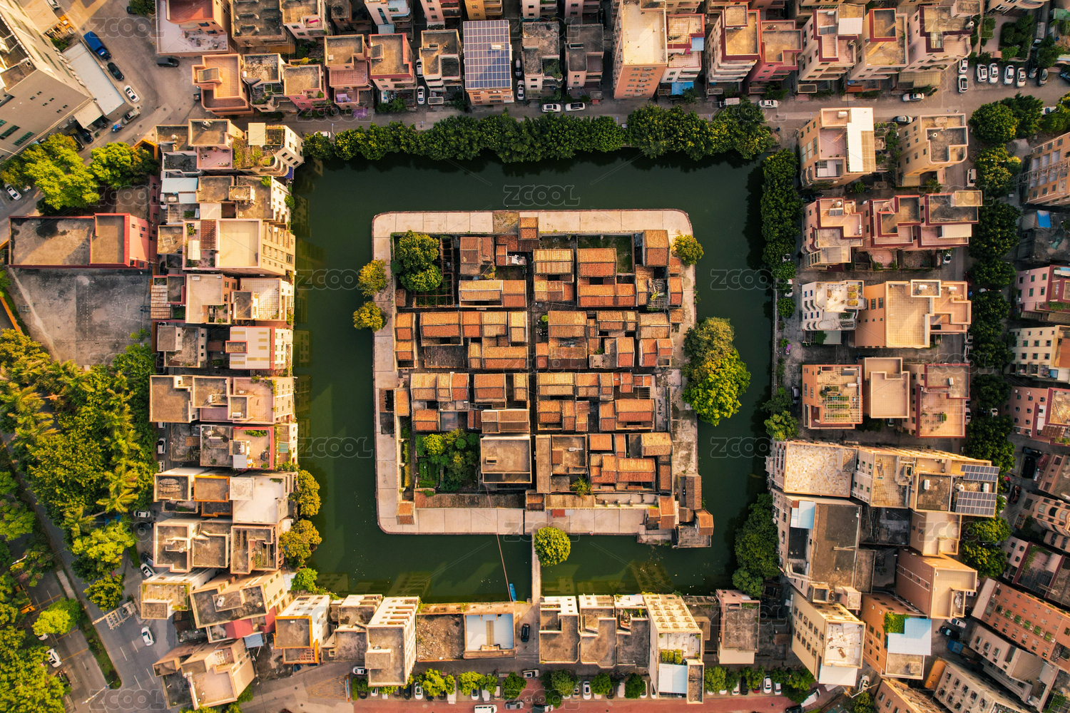 广东,东莞,逆水流龟村堡,虎门,村庄,护城河,古村落,四方,黄色,古建筑