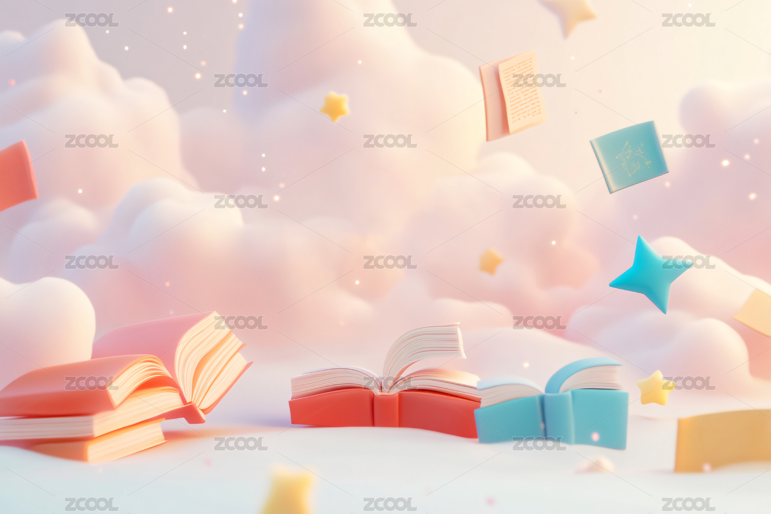 粉色背景下的书和云