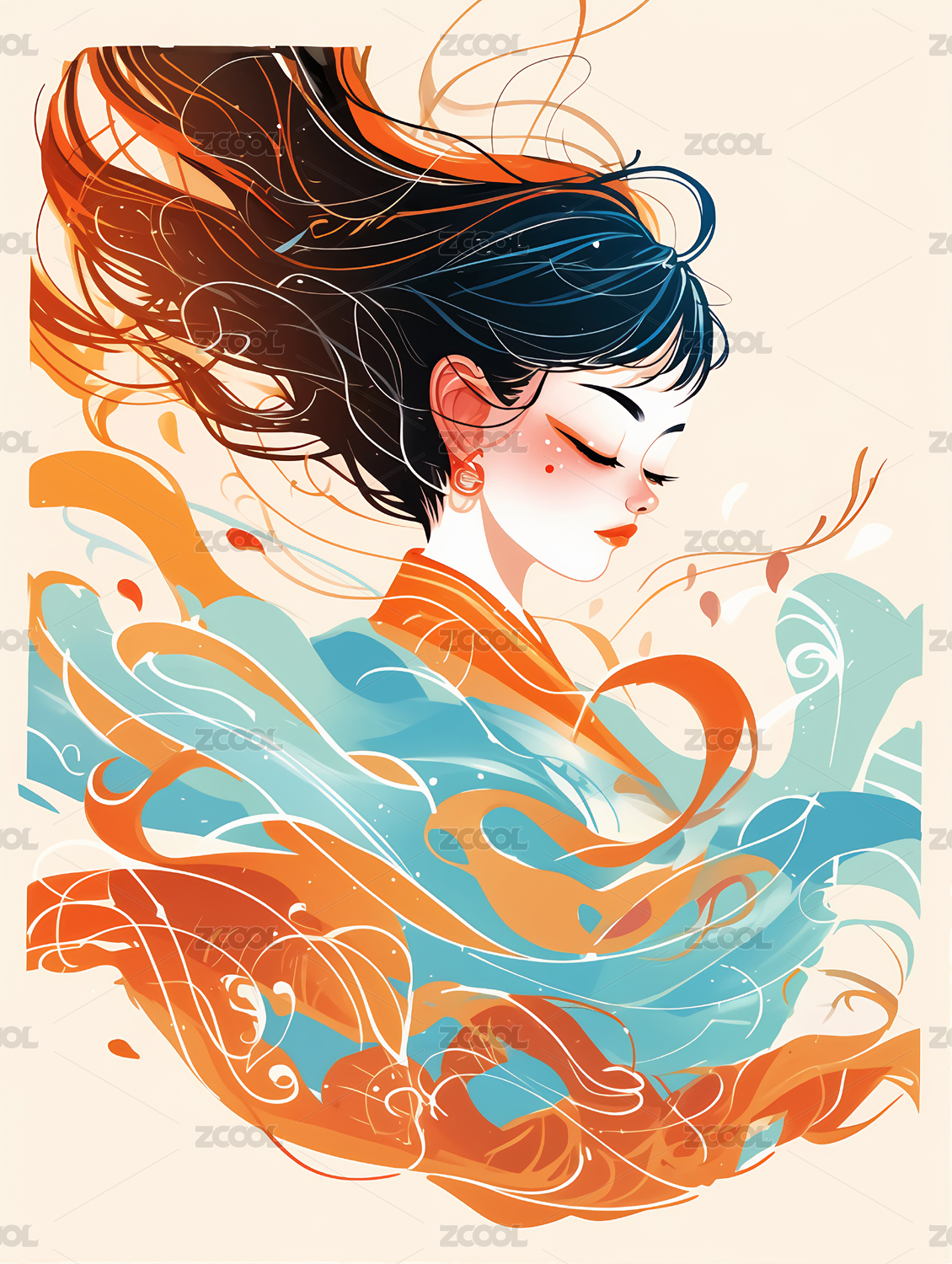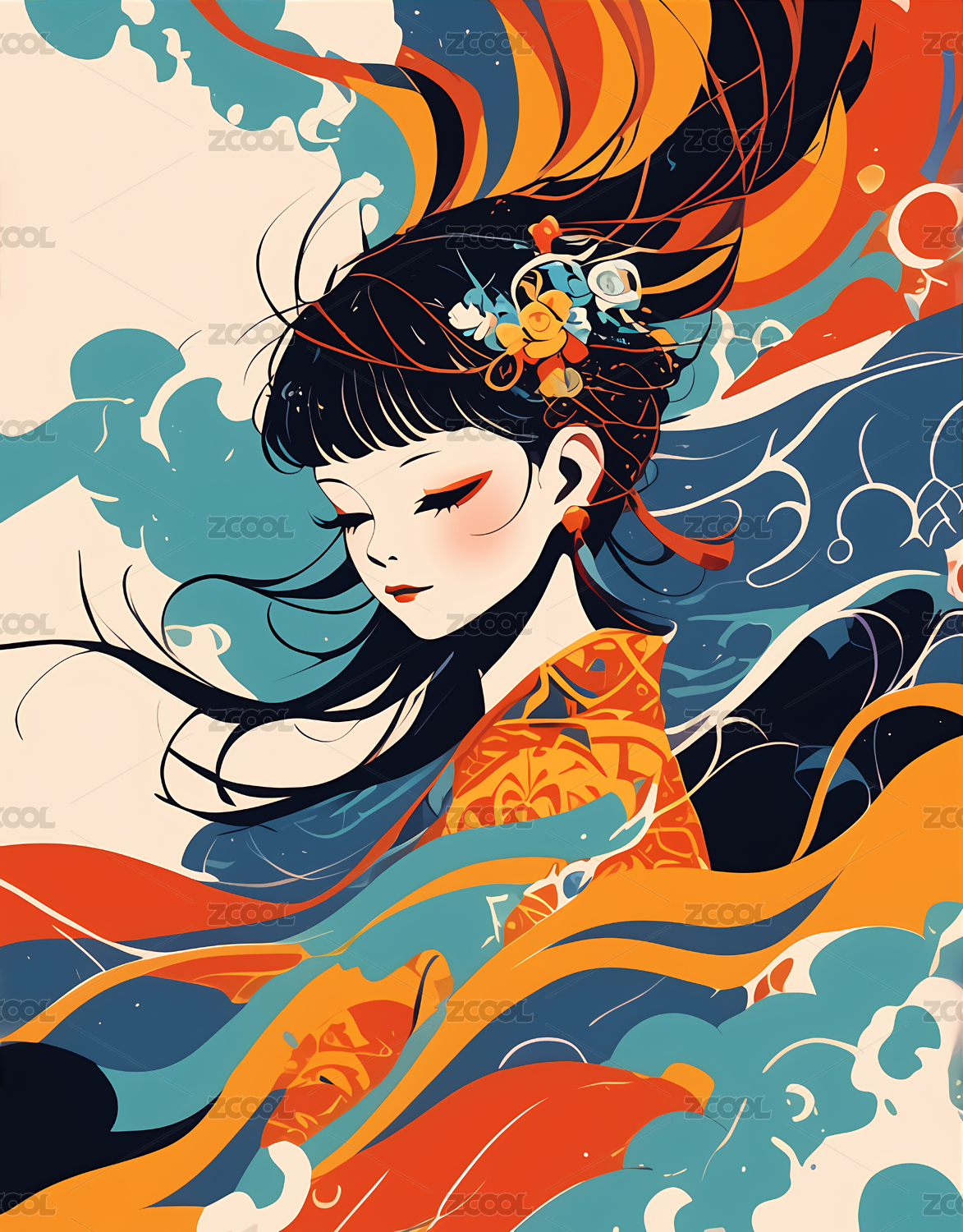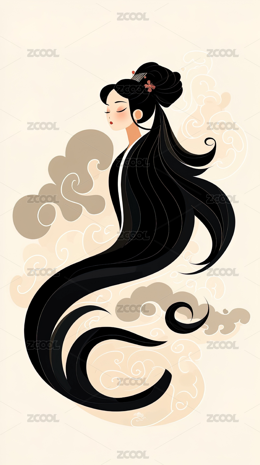 国潮,国风,人物,汉服,美女,女人,美丽,古装,黑色,长发