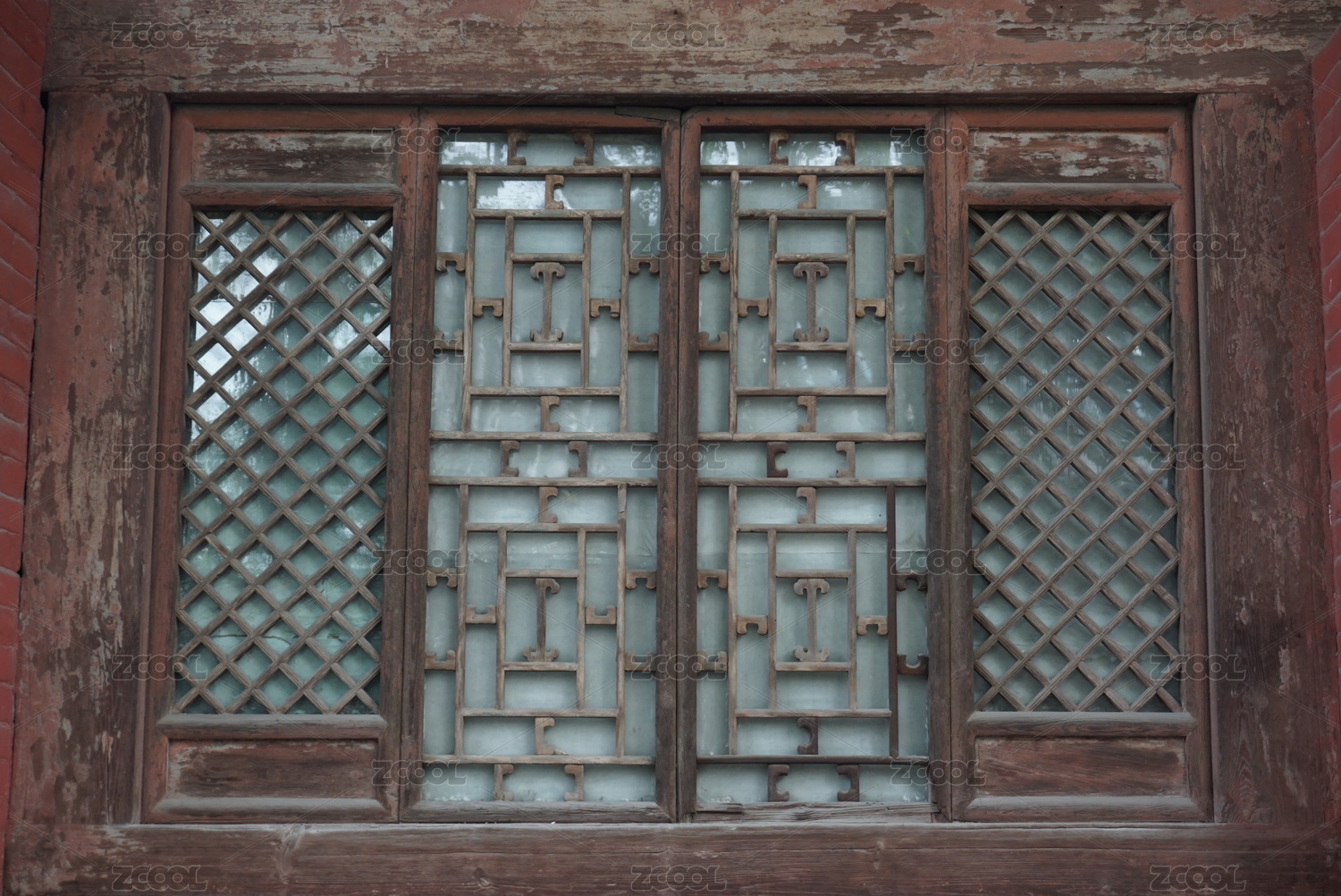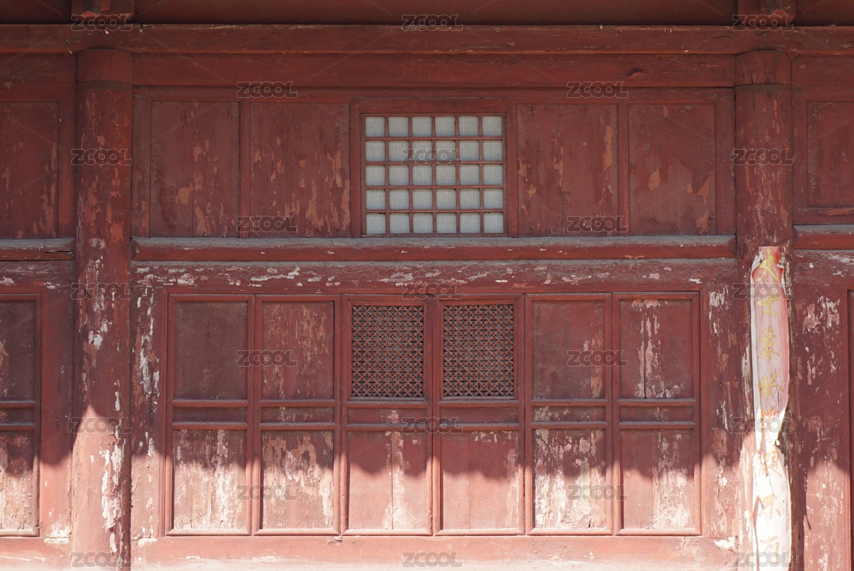 中国古典建筑样式大红油漆隔扇门窗