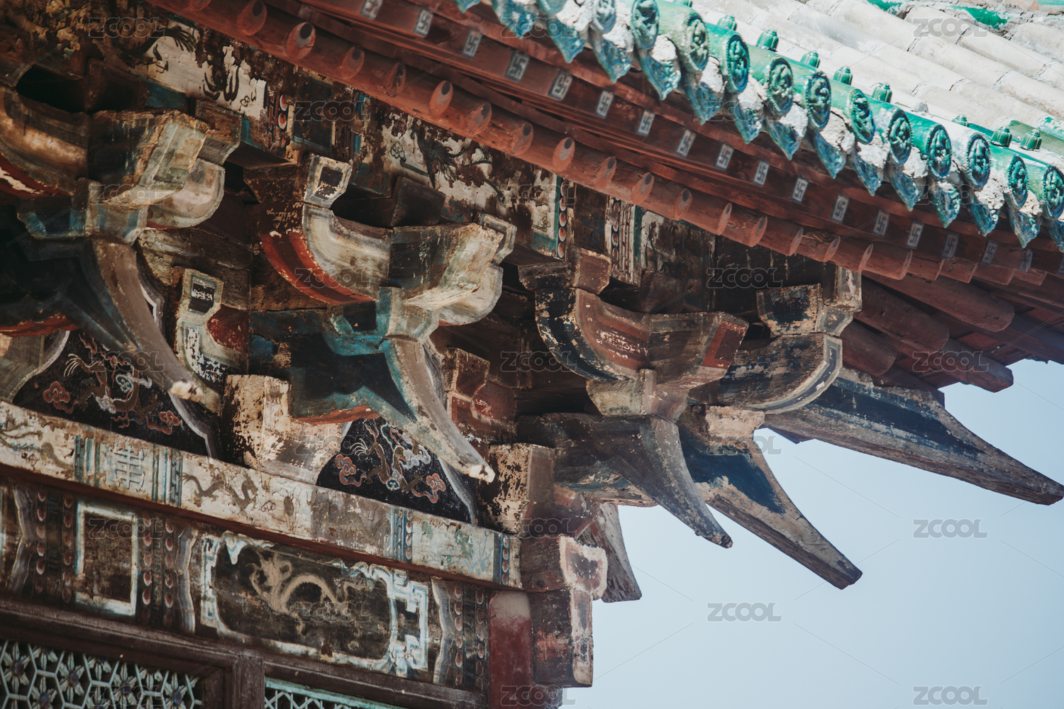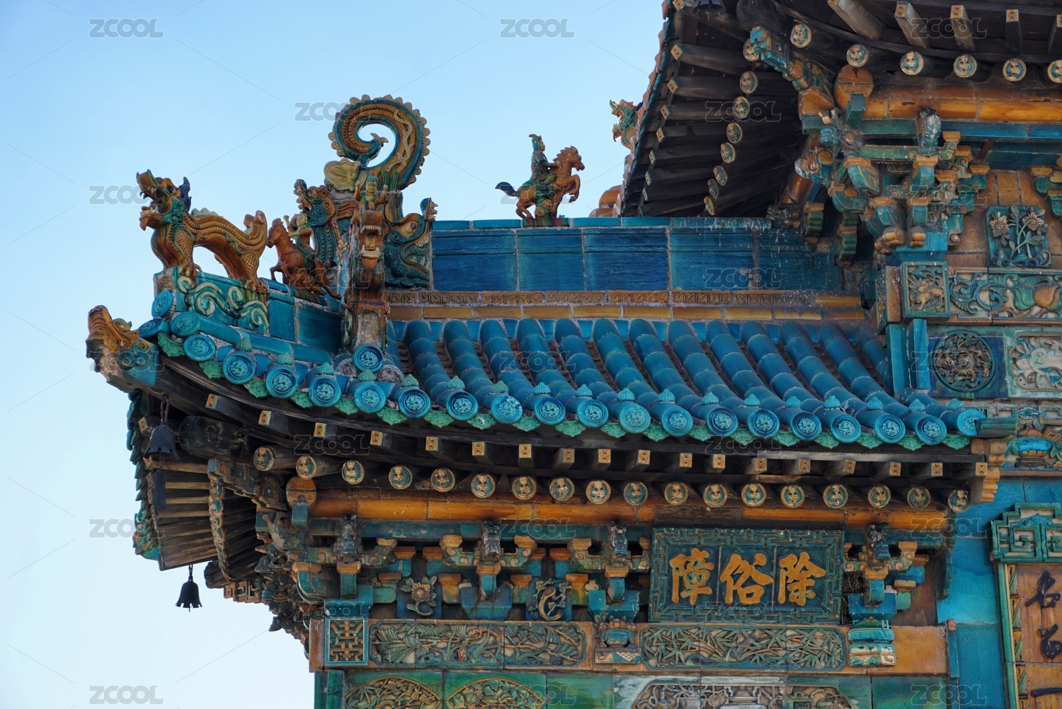 中国山西省平遥县古城牌楼斗拱园林建筑