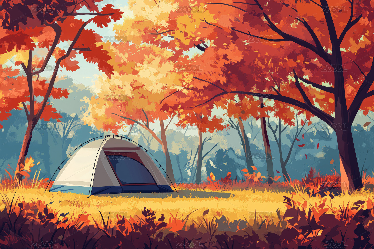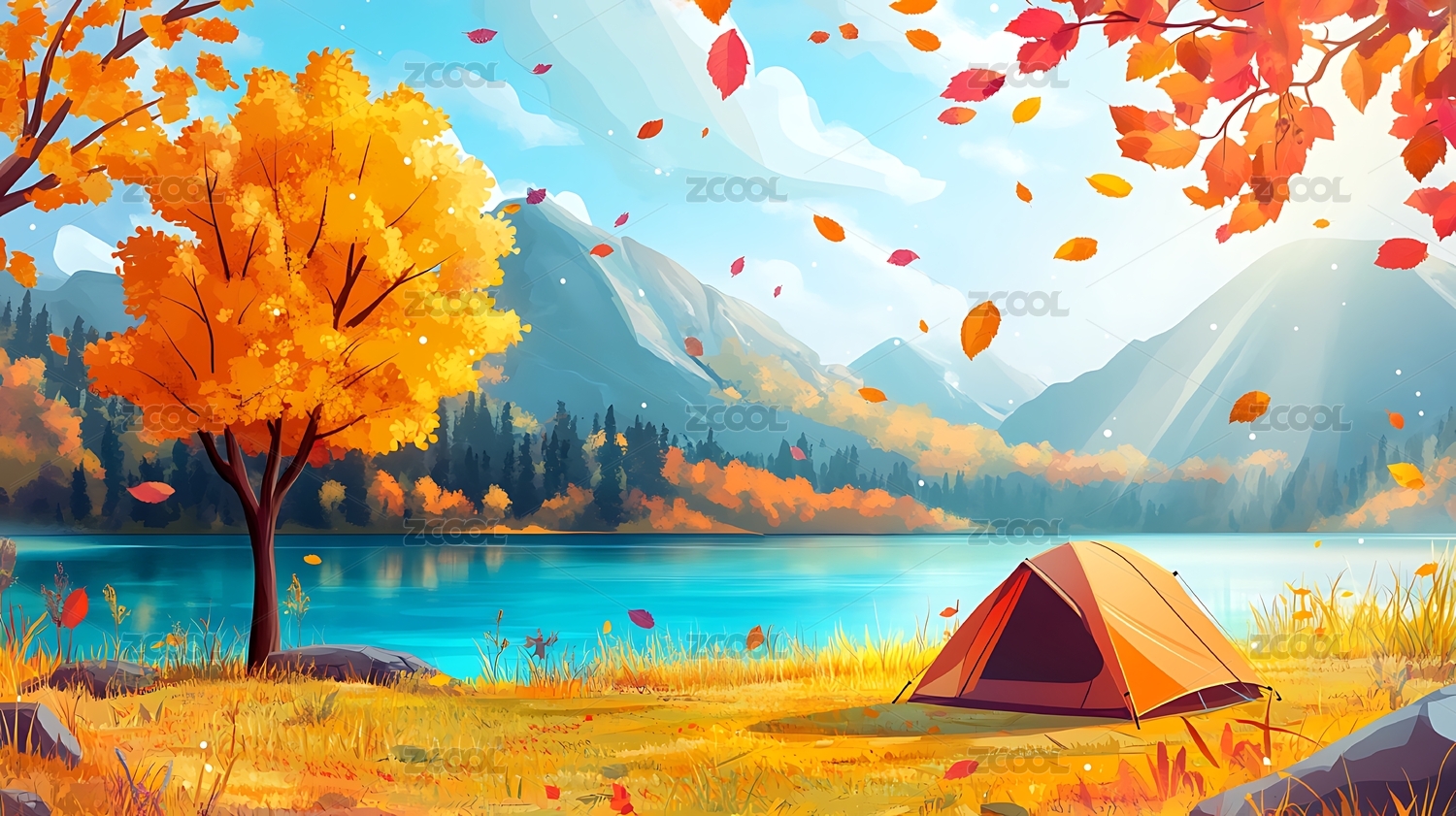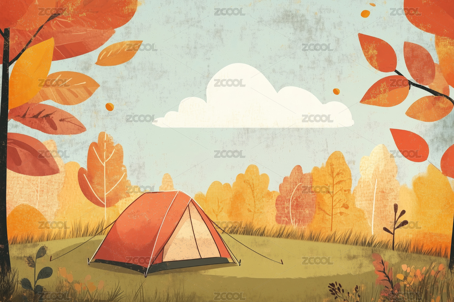 无人,秋天,插画,自然,户外,风景,秋分,立秋,公园,露营