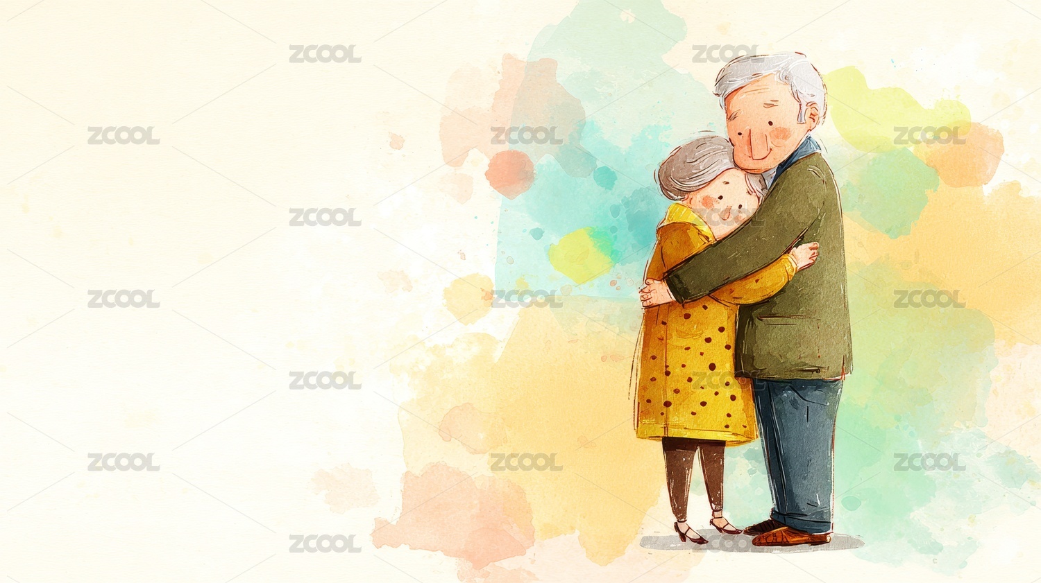 卡通爷爷奶奶插画