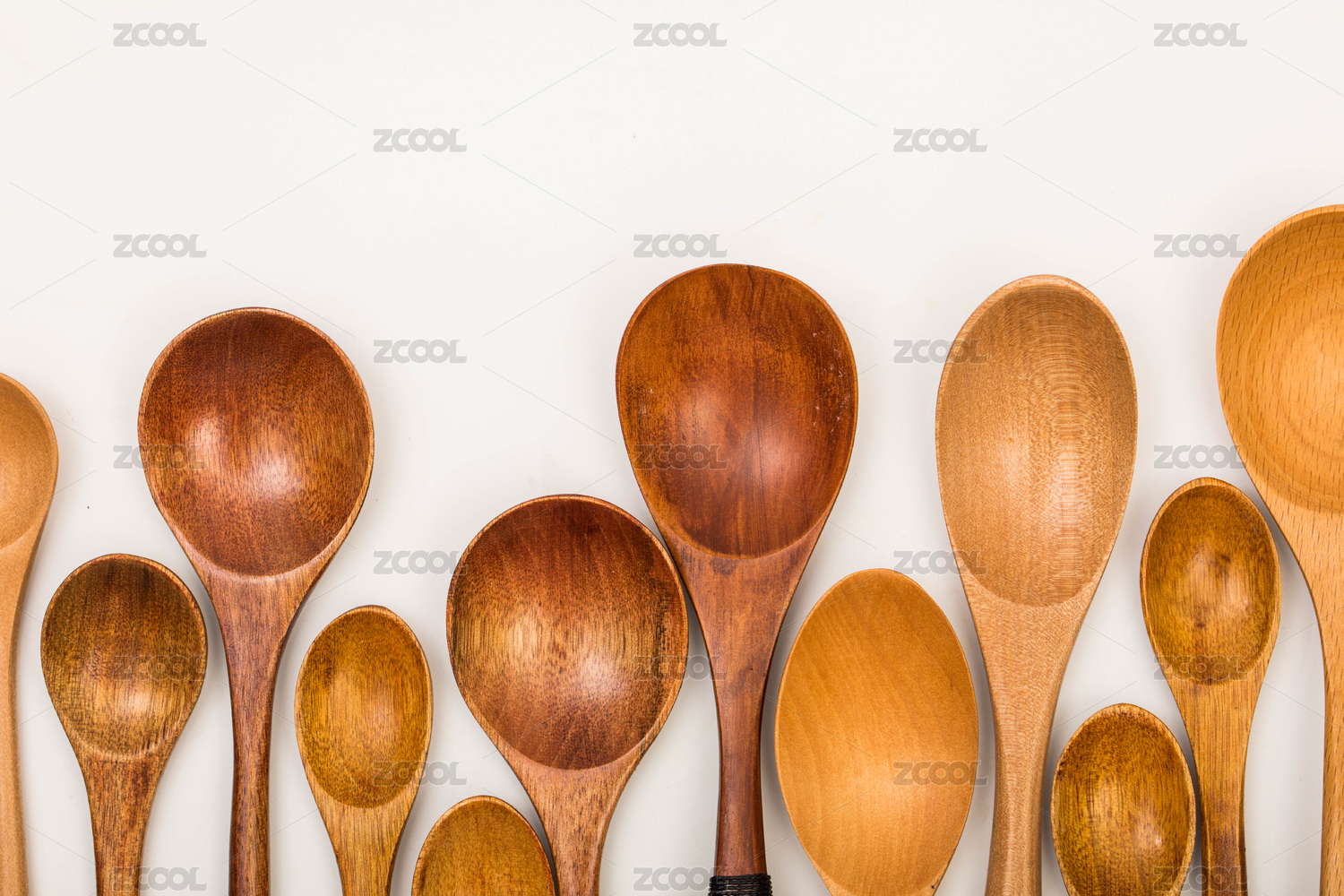 白色背景上摆放的木制勺子