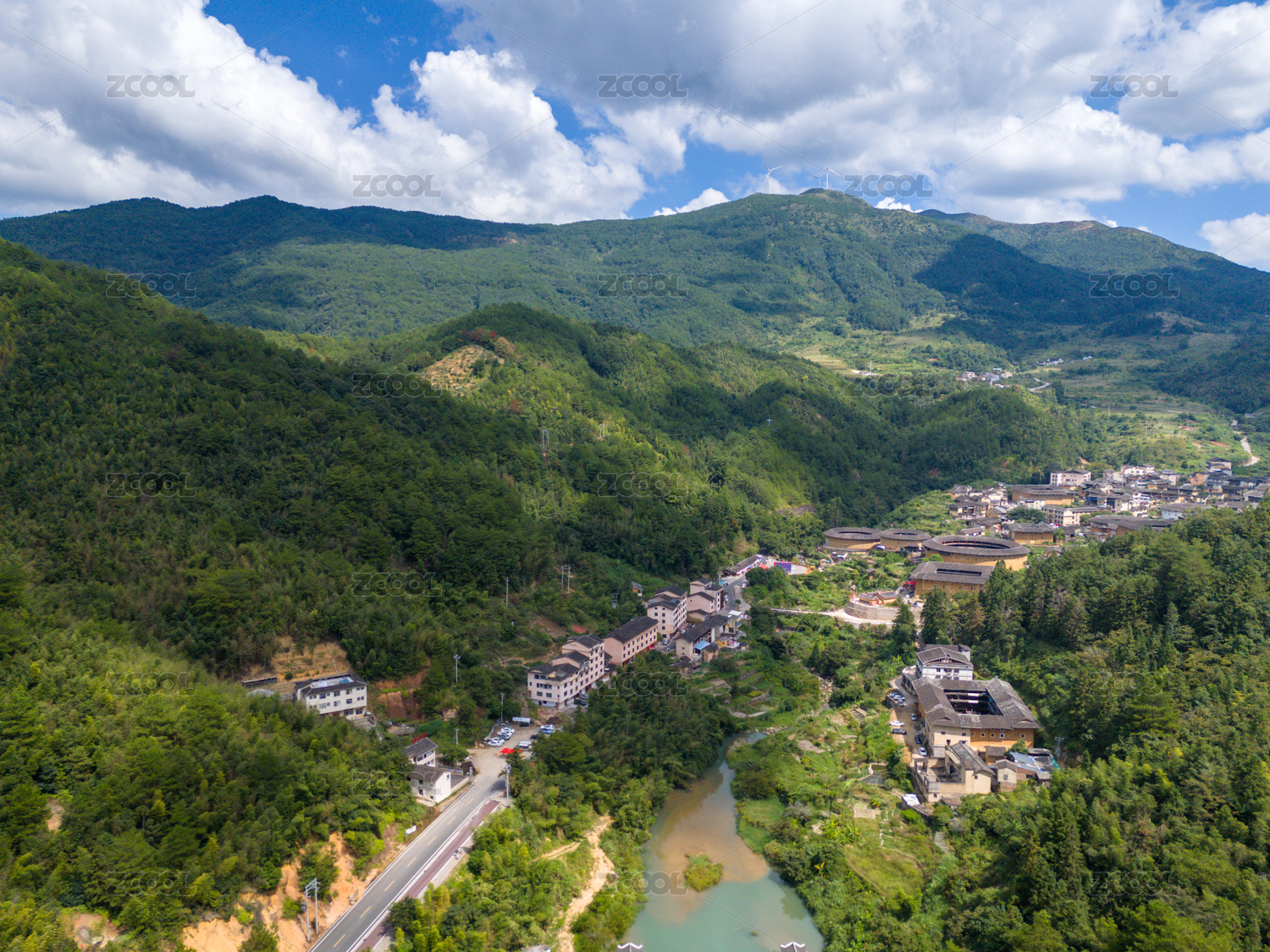 泸沽湖,俯瞰,湖,建筑,草地,平地,阴天,住宅,绿色,秋