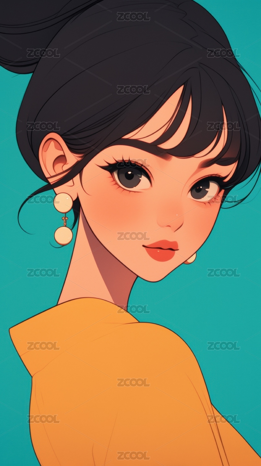 橙色衣着的黑发女性插画