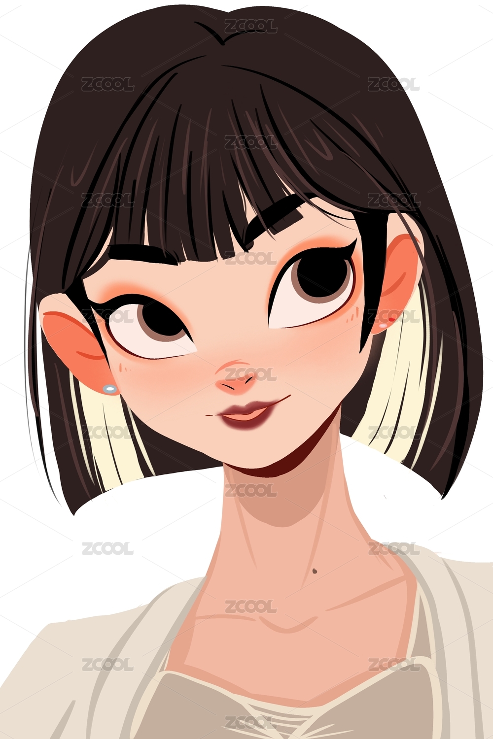 卡通短发女孩头像插画