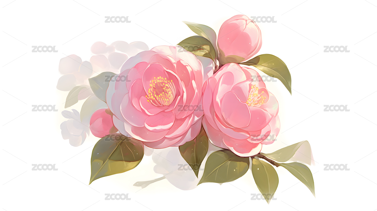 粉色山茶花水彩画高清壁纸