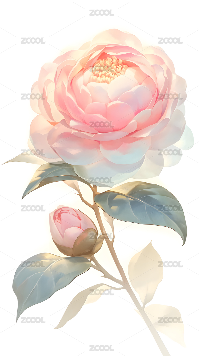 山茶花水彩插画
