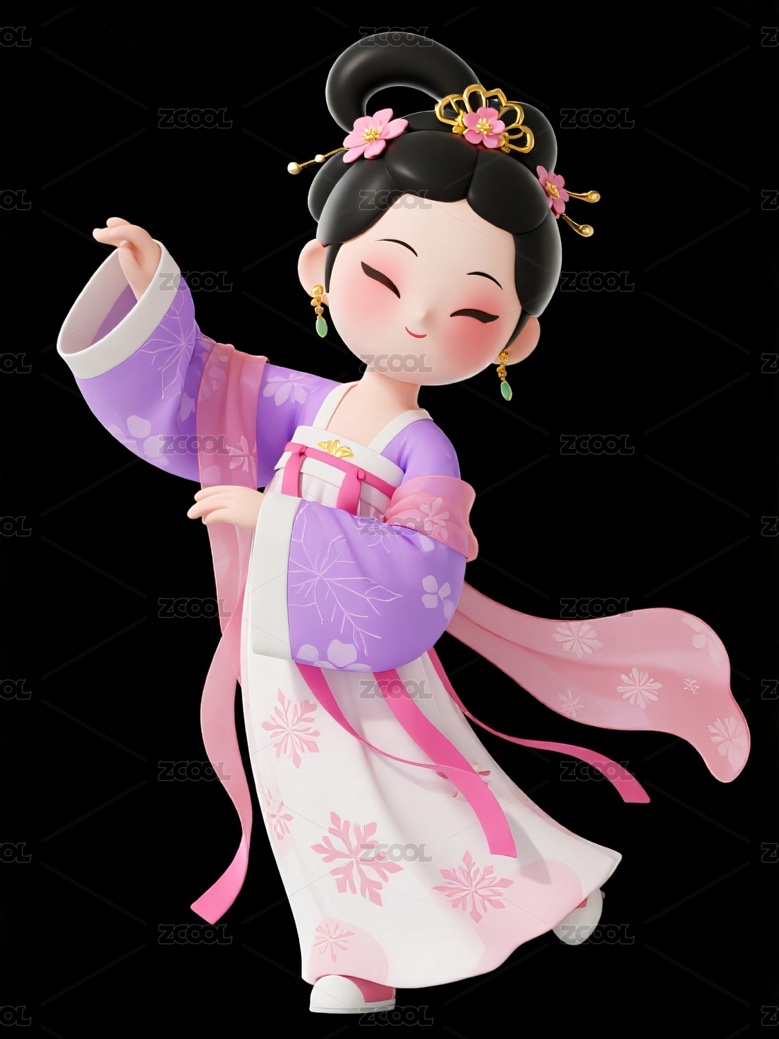 中国风,粉色,美女,卡通,插画,人,汉服,国潮风,少女,女孩