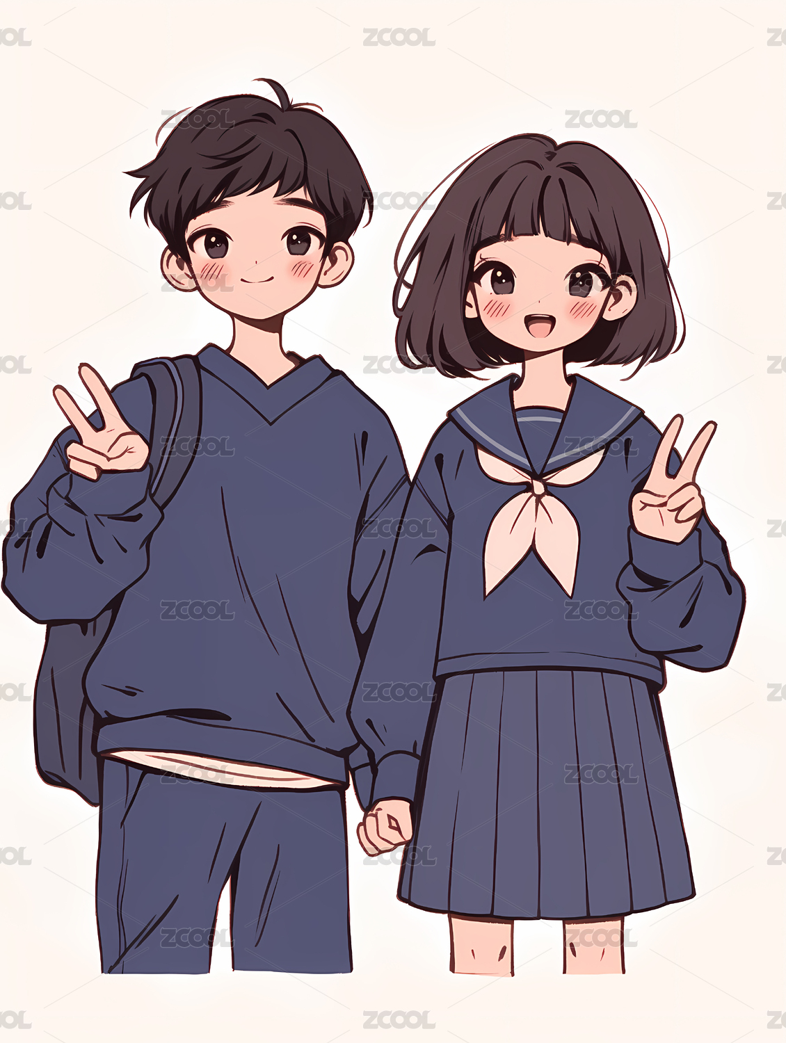 青春少年少女校服图