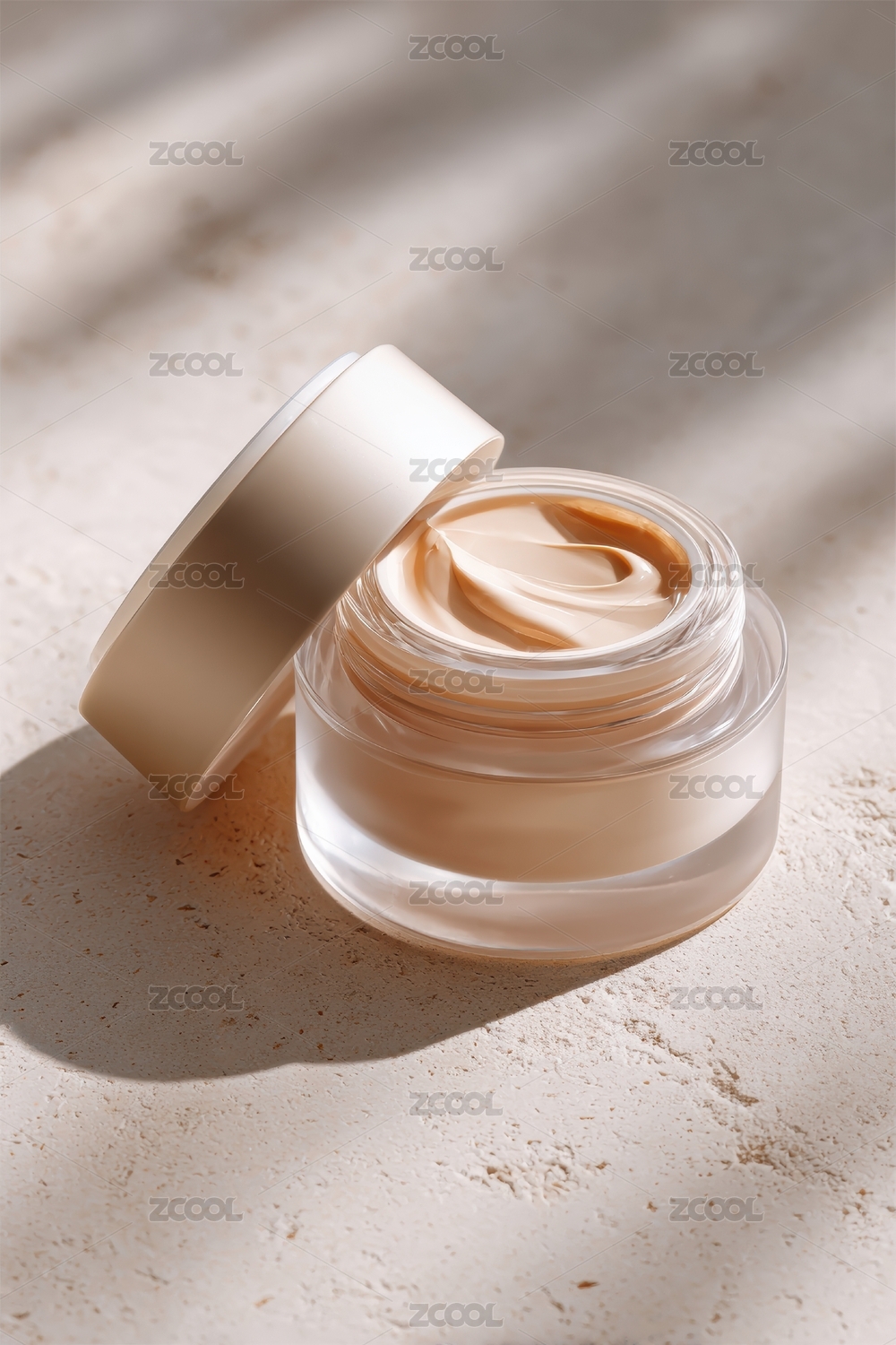 阳光下玻璃瓶装面霜特写