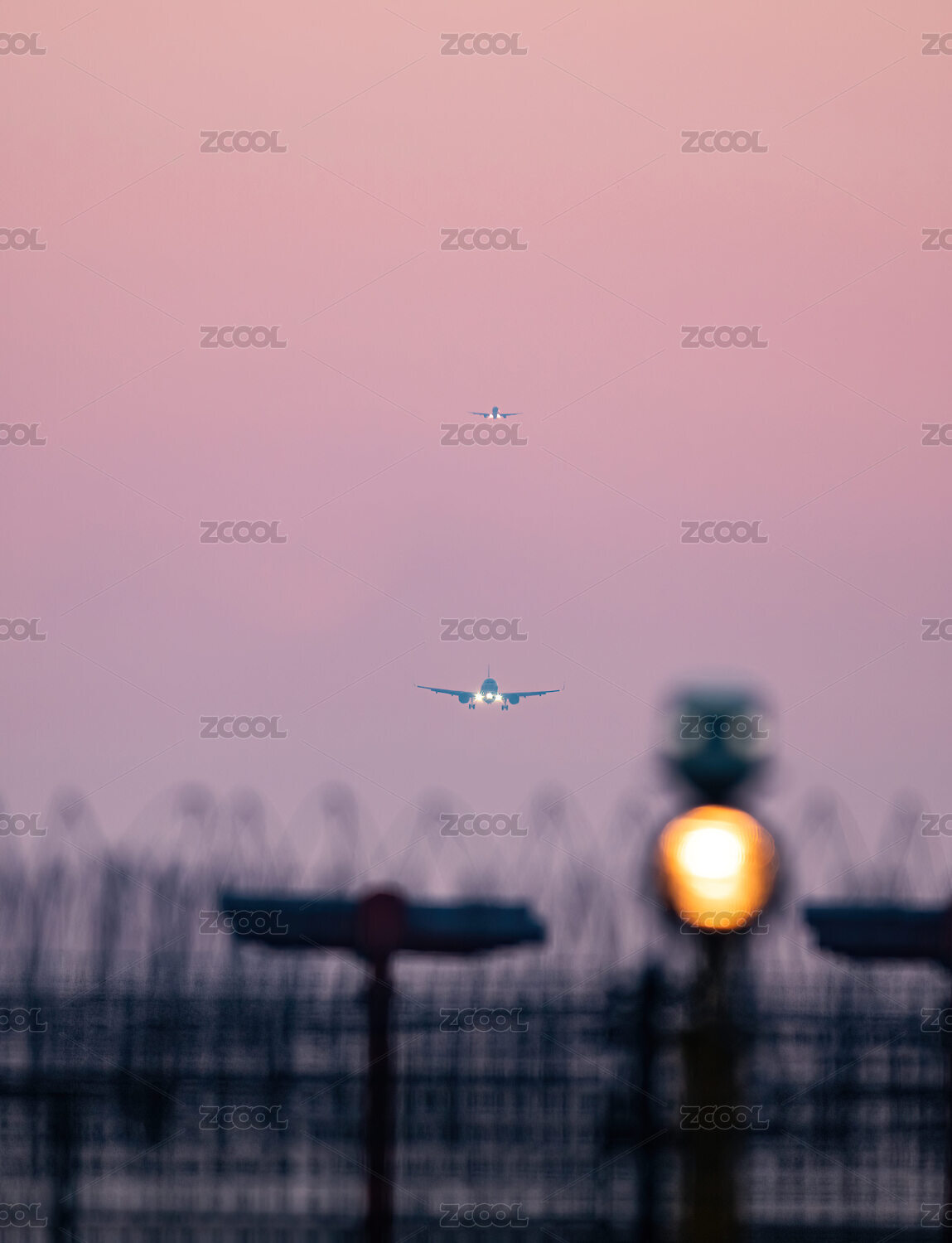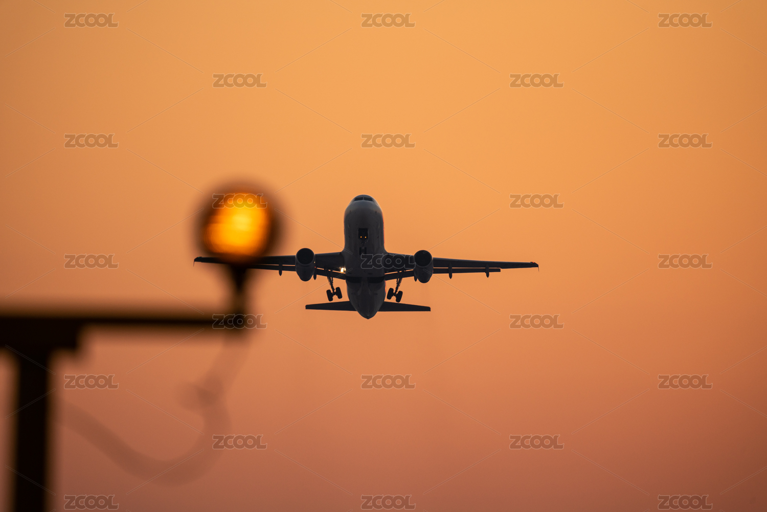 冬天光秃秃的树枝中间,飞向天空的飞机