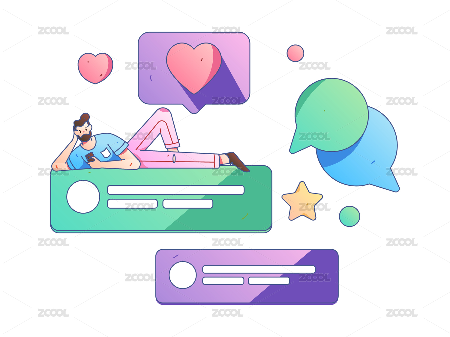 社交媒体评论扁平人物矢量概念插画