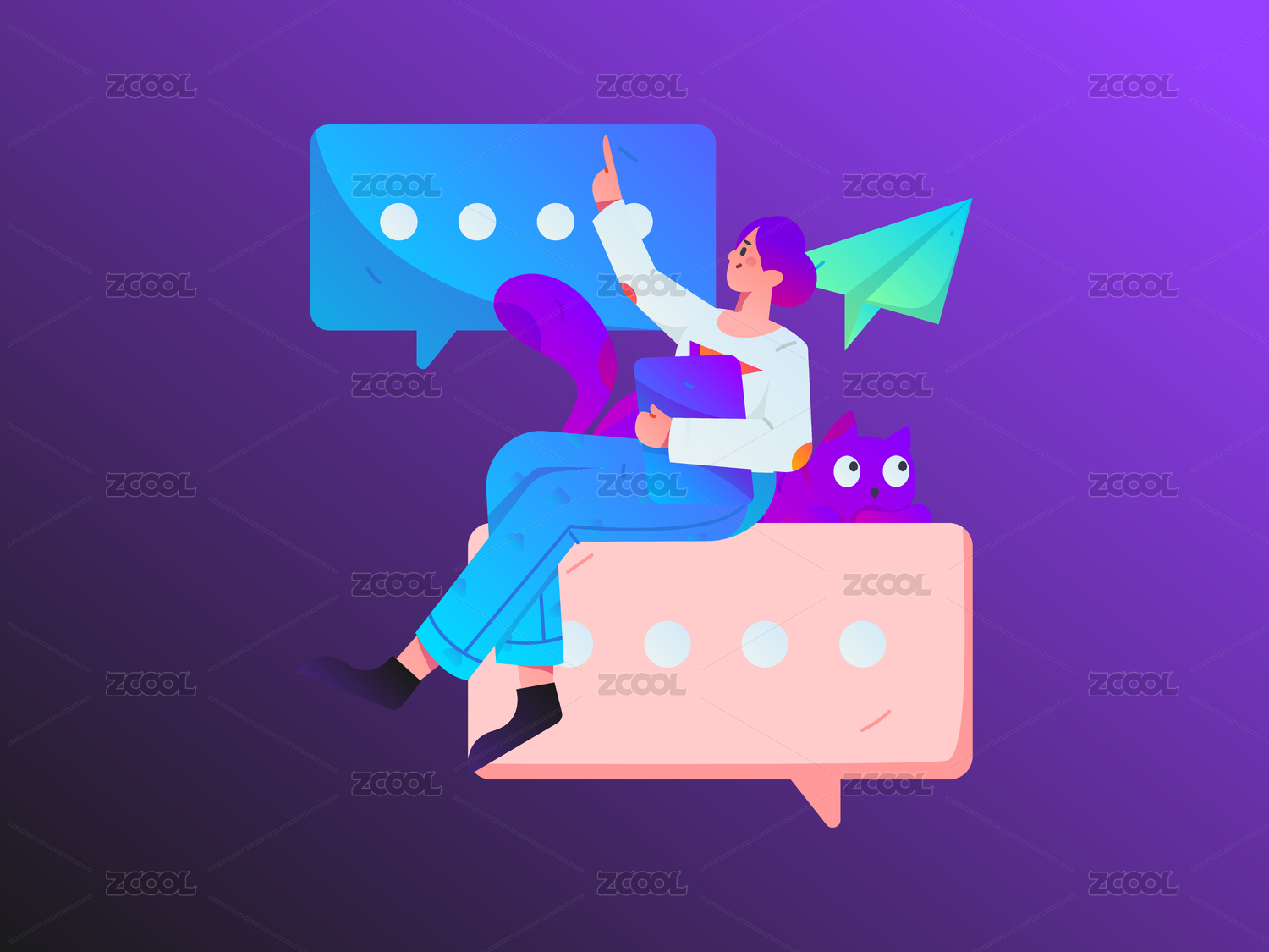 虚拟的人物社交沟通概念商业扁平矢量手绘插