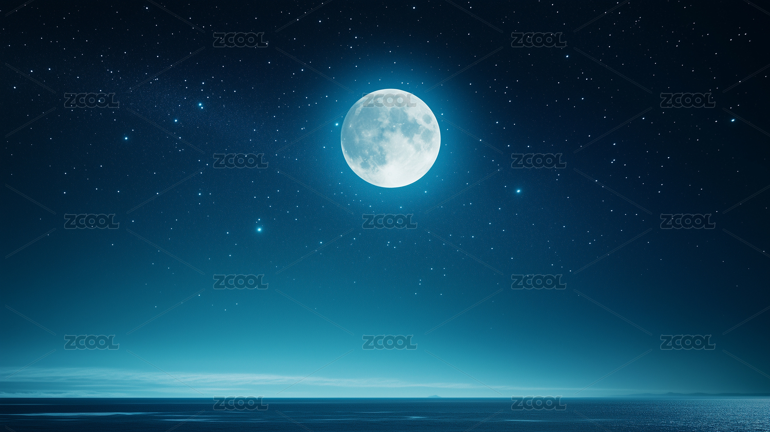 月亮高清背景唯美梦幻插图海面满月壁纸