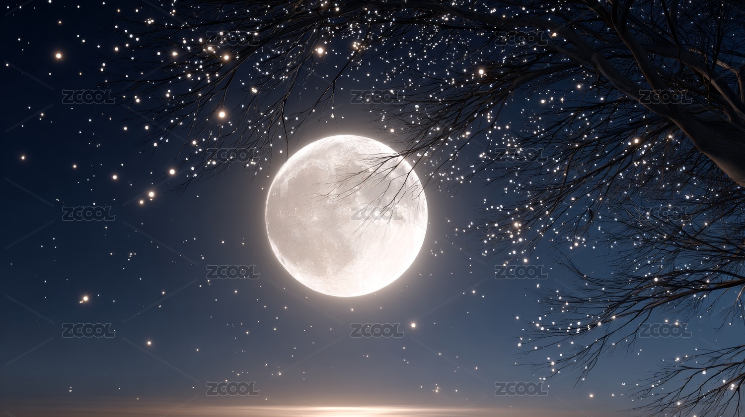 梦幻月亮背景唯美插图海上满月高清壁纸