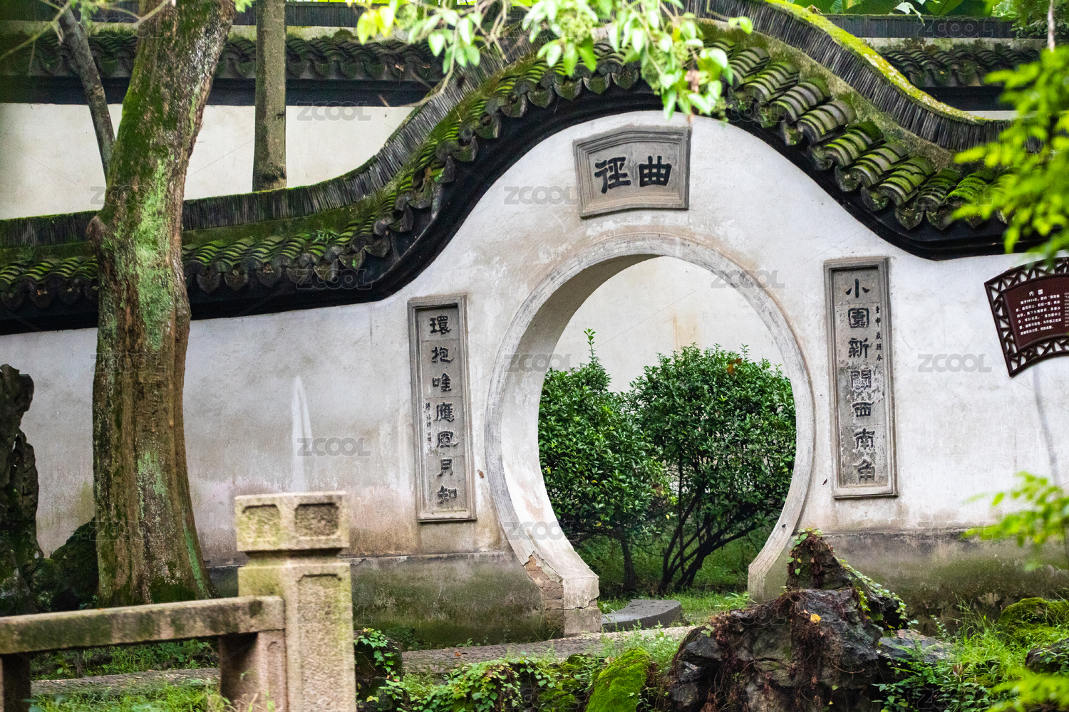 中国江苏省南京瞻园雨中的风景,雨中的江南园林