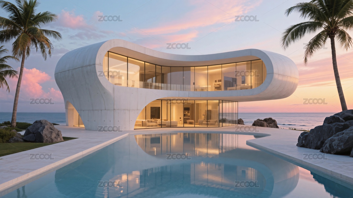 海岸线现代建筑泳池