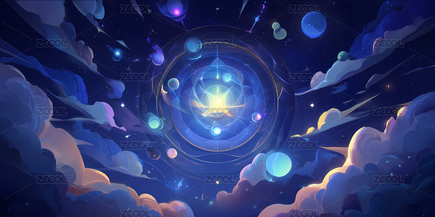手绘唯美的抽象艺术感夜晚天空风景插画