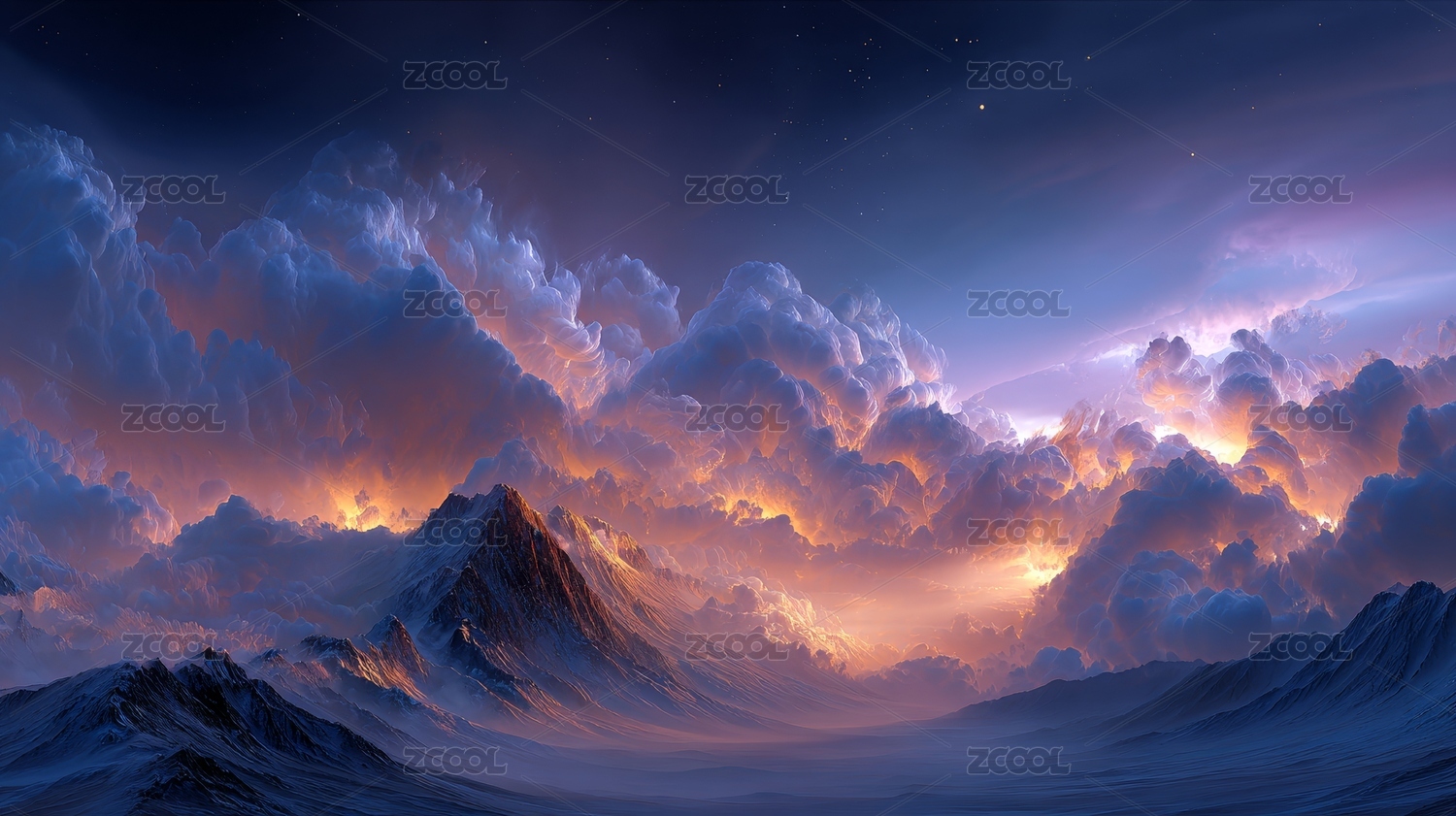 梦幻星空下的奇幻山峦云海
