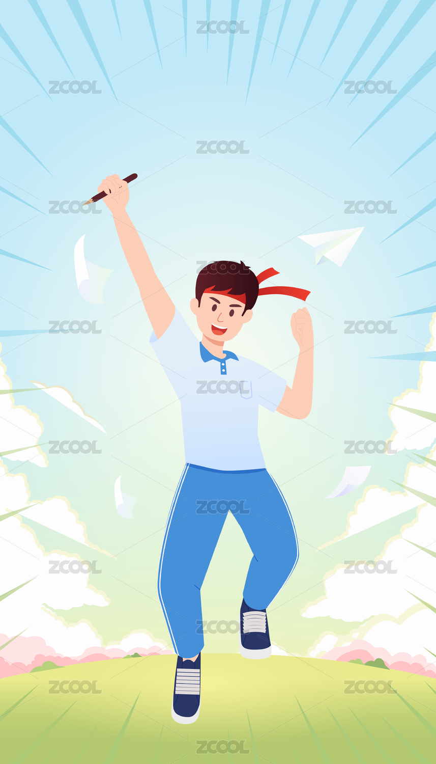 高考倒计时学生欢乐跳跃插画考试加油海报